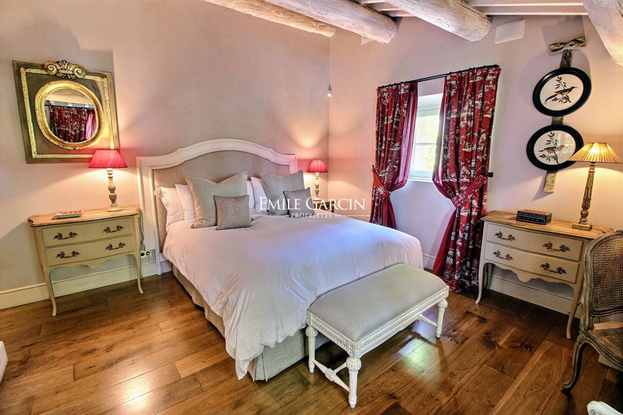Dans la campagne Aixoise, cette superbe bastide du XVIIIème siècle séduit tant par sa beauté que par l'atmosphère qu'elle dégage. Située sur un domaine de 2,8 hectares, la Bastide Cardinale, chargée d'histoire, a été entièrement rénovée avec des matériaux nobles et haut de gamme. Cette propriété de grand prestige fera de votre séjour un moment d'exception. Piscine 15 x 6 m, chauffée. 6 chambres (avec refroidissement air pulsé) et 6 salles de bains. Capacité 12 personnes maximum