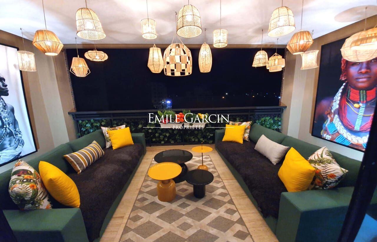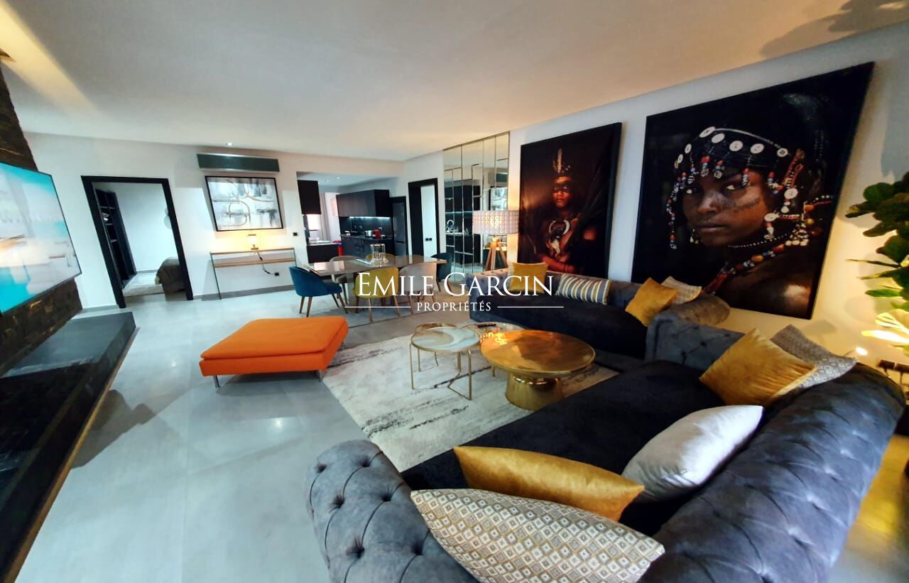 Idéalement situé au coeur du quartier moderne de Marrakech, et à seulement 20 minutes de la Place Jema El Fnaa, appartement moderne et lumineux de 154 m² avec 3 suites / 3 salle de bains. Belle et spacieuse pièce à vivre avec cheminée. Petite terrasse bien aménagée.