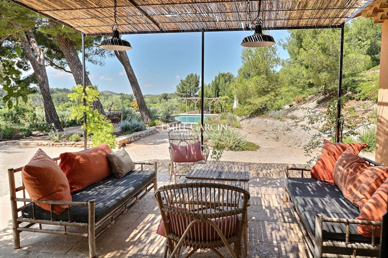 La terrasse et la piscine chauffée nous donnent une vue panoramique sur les Alpilles.