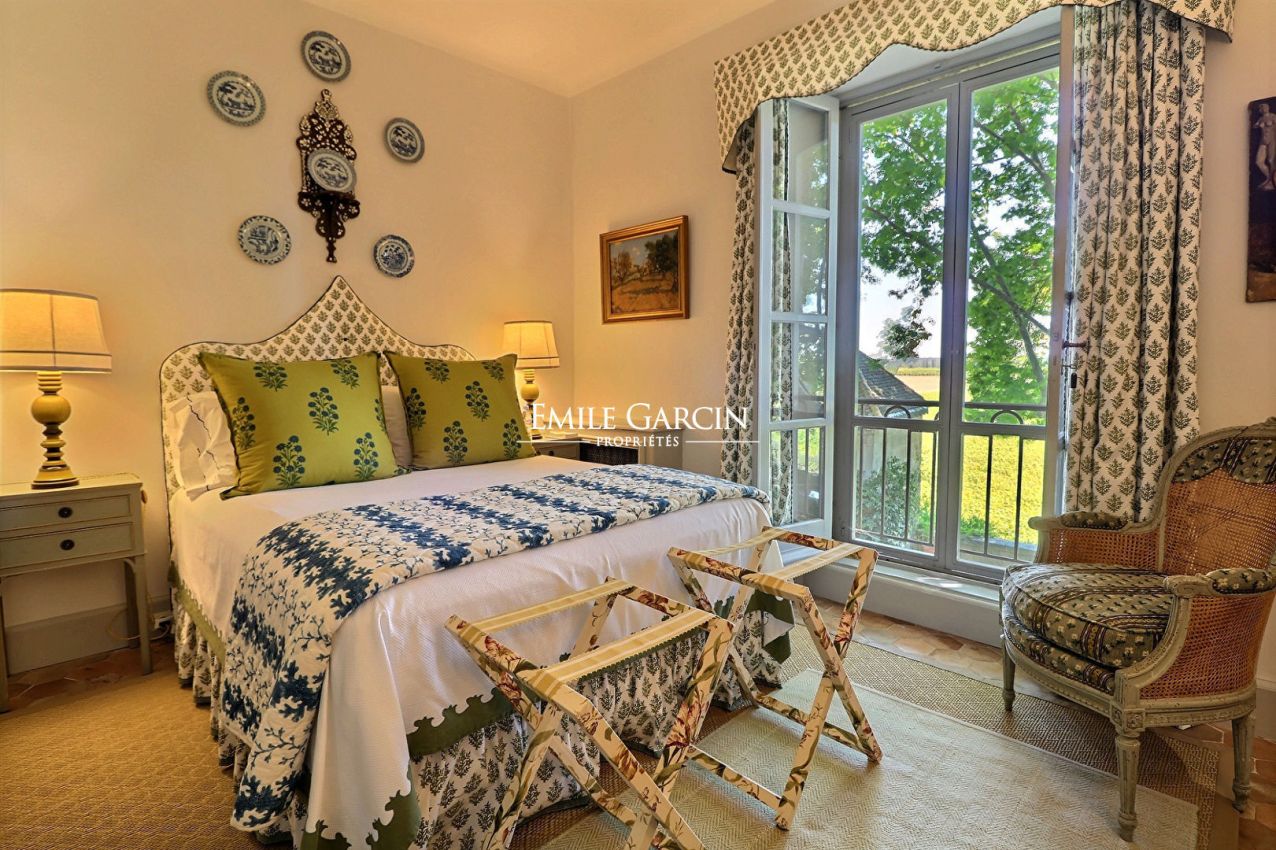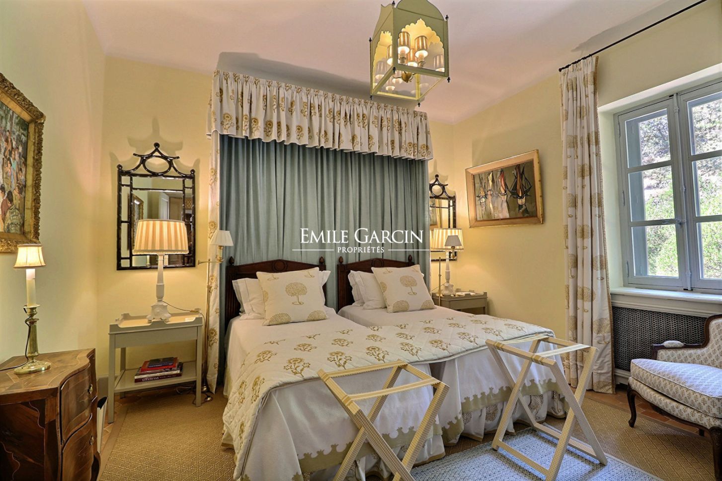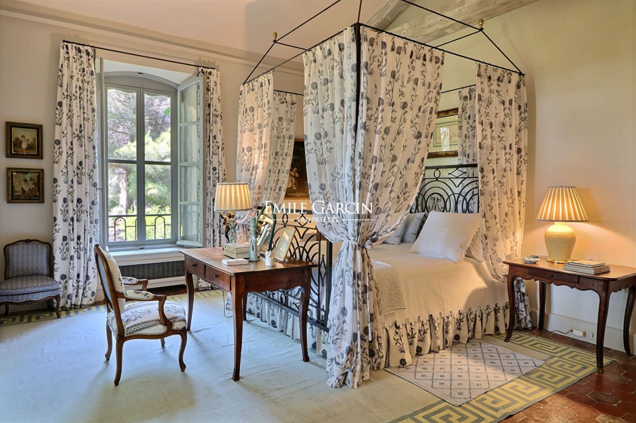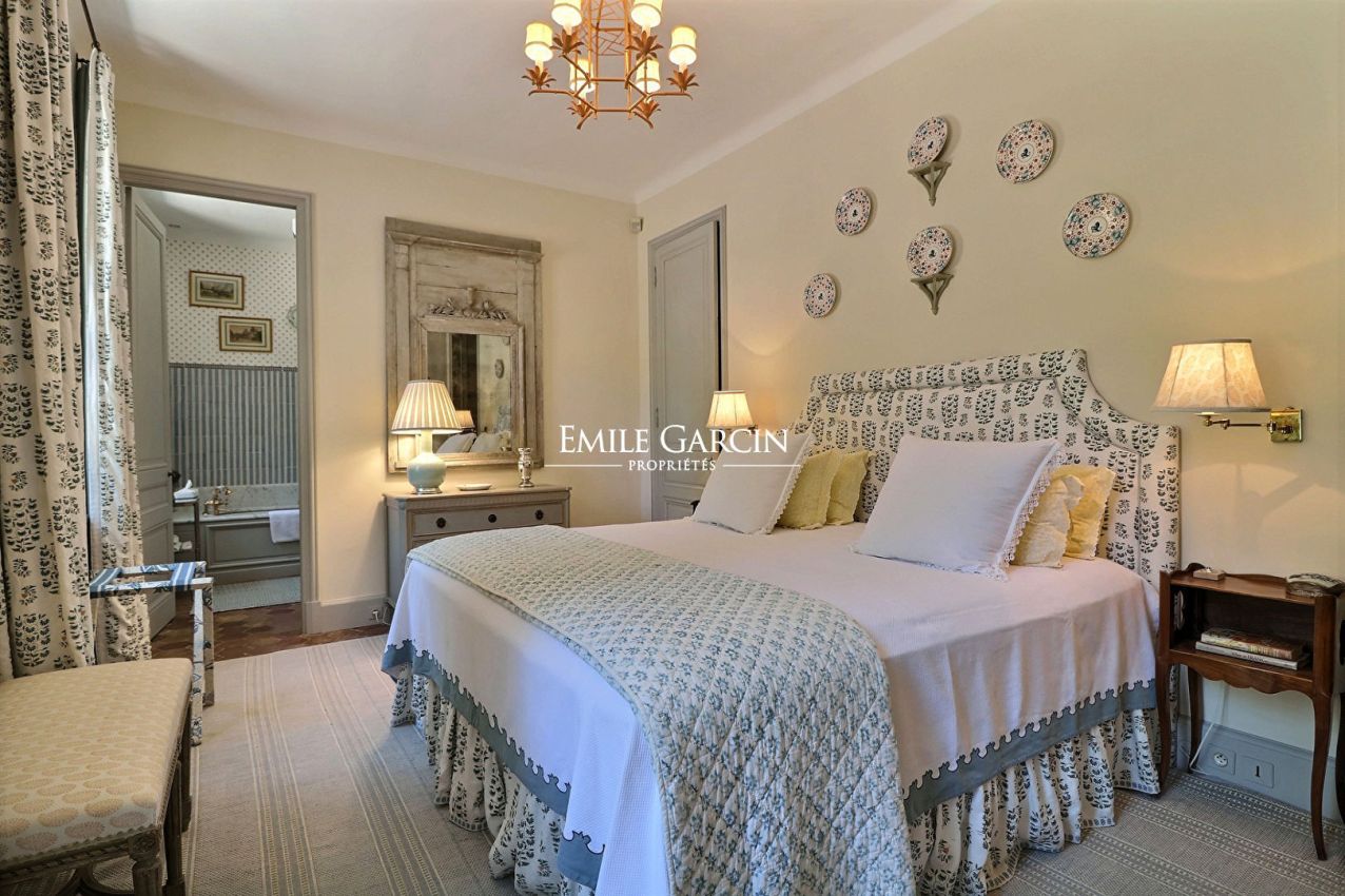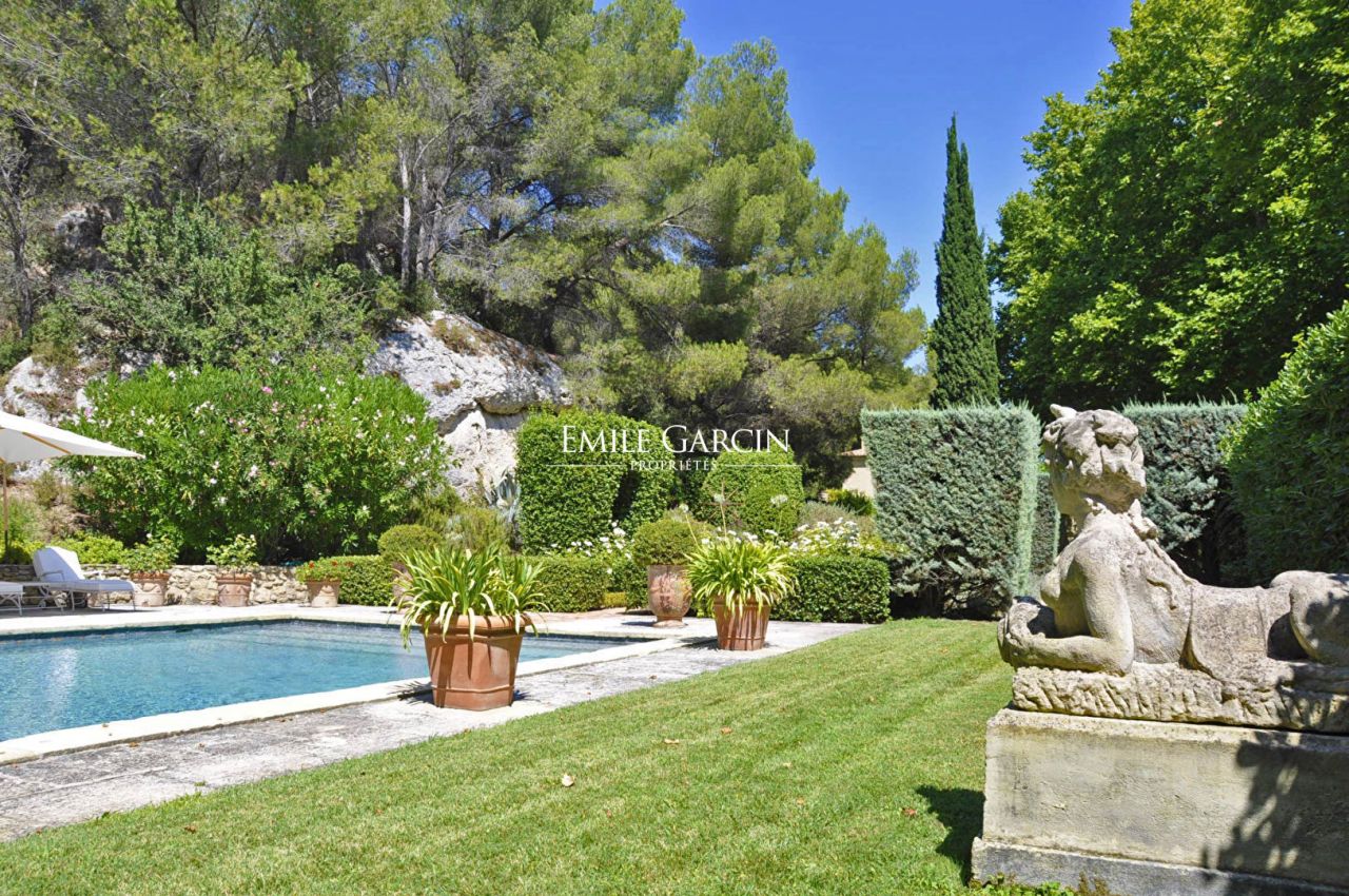 Au sud des Alpilles, domaine de 56 hectares et sa splendide bastide à la décoration soignée, offrant 7 chambres - Climatisation - Grande piscine chauffée - Tennis La bastide se compose ainsi : En rez-de-jardin : Vaste entrée desservant les pièces à vivre. Salle à manger avec cheminée en pierre et alcôve servant de desserte.