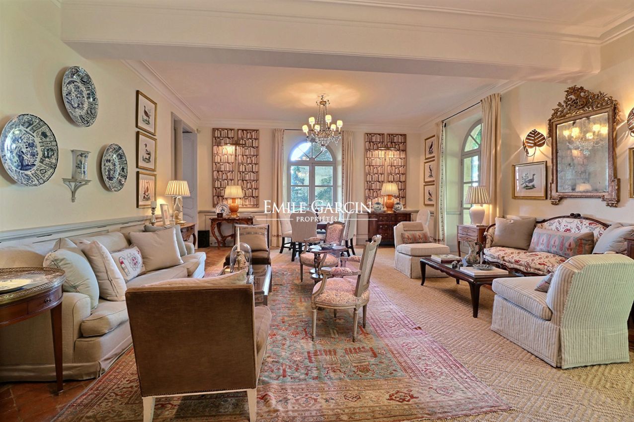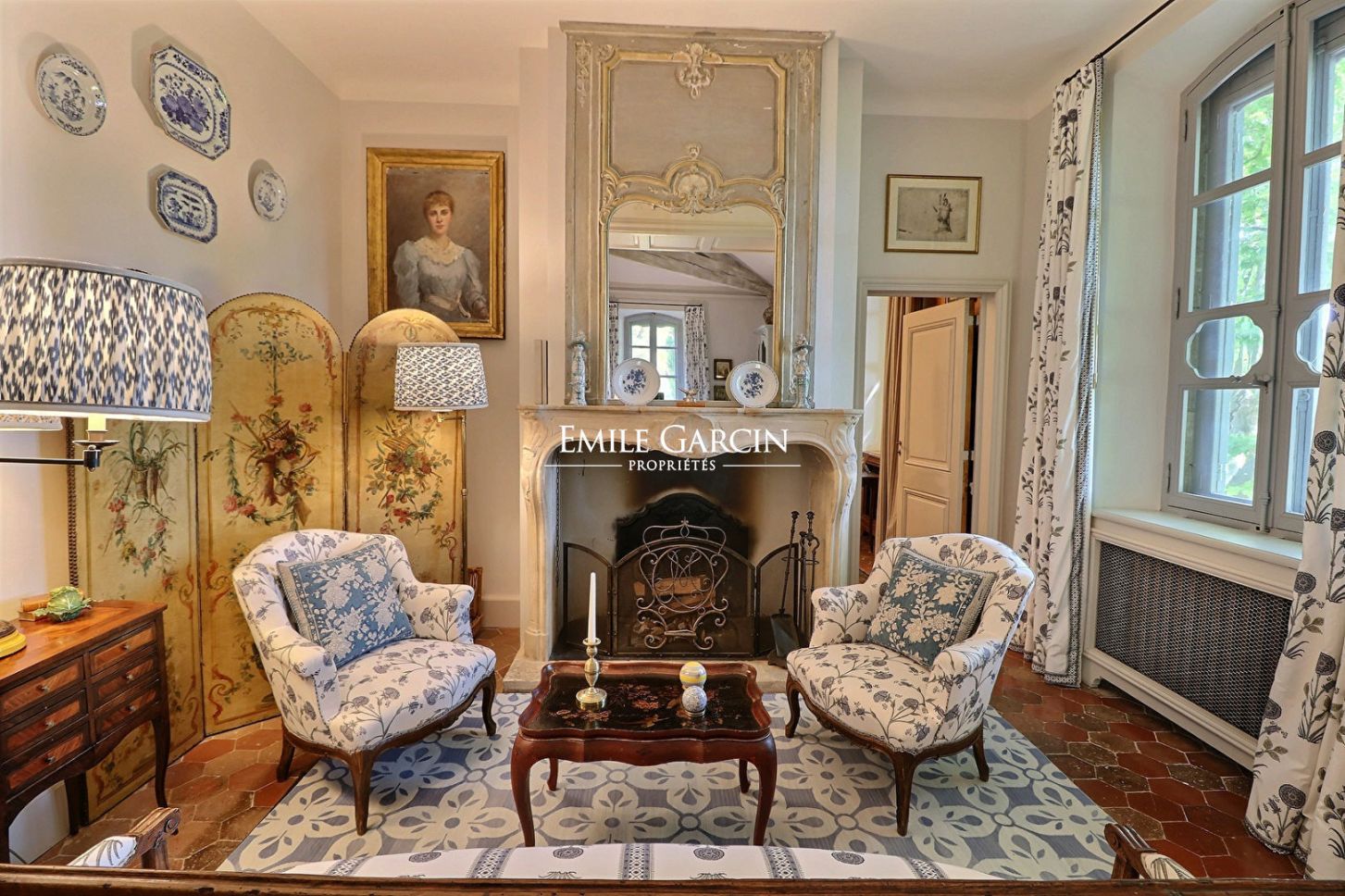 Grande cuisine provençale toute équipée avec espace déjeuner et cheminée. Climatisée. Grand salon Orangerie occupant l'extrémité de la demeure à l'est. Salon bibliothèque avec cheminée au sud. Deuxième grand salon de réception avec cheminée, ouvert sur les façades Sud et Ouest et donnant sur la terrasse ombragée et le jardin (accès direct à l'appartement de maître). Toilettes invités.