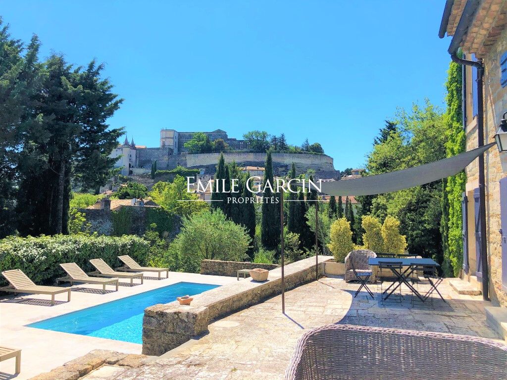 Charmant Mas qui allie le charme de l'ancien et le confort du moderne. Sur un terrain arboré et ombragé, il offre une vue magnifique sur le château de Grignan, et se situe à seulement 300m des nombreux commerces et restaurants de la ville. La propriété offre 5 chambres (climatisées) et 4 salle de bain, une cuisine équipée, une belle salle à manger et un séjour ouverts sur les extérieurs. Le jardin de 3 500m² propose une belle piscine chauffée de 8x3m, d'un boulodrome et d'une table de ping-pong pour occuper les belles après-midis d'été. La terrasse face au château sera un endroit merveilleux pour un diner préparé au barbecue au gaz. Plus de renseignement sur demande