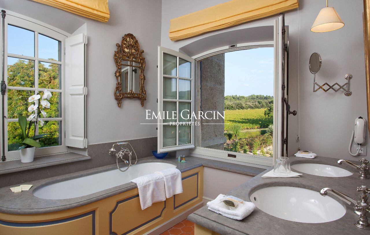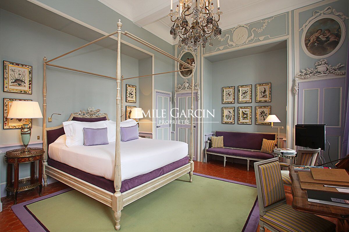 Le Château d'Alamanon. Niché au coeur d'un domaine viticole de 300 hectares, cette maison de famille dégage une atmosphère magique et chargée d'histoire. Luxe, sérénité et services sur mesure sont les maîtres-mots de ce lieu unique qui a bénéficié de plusieurs années de rénovation. 11 chambres climatisées et 11 salles de bains. L'une des plus belles propriétés du sud de la France. Piscine 21 x 7 m