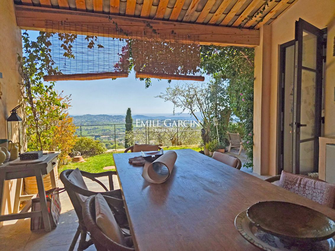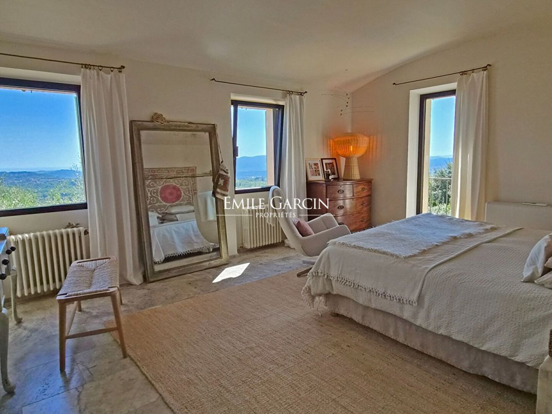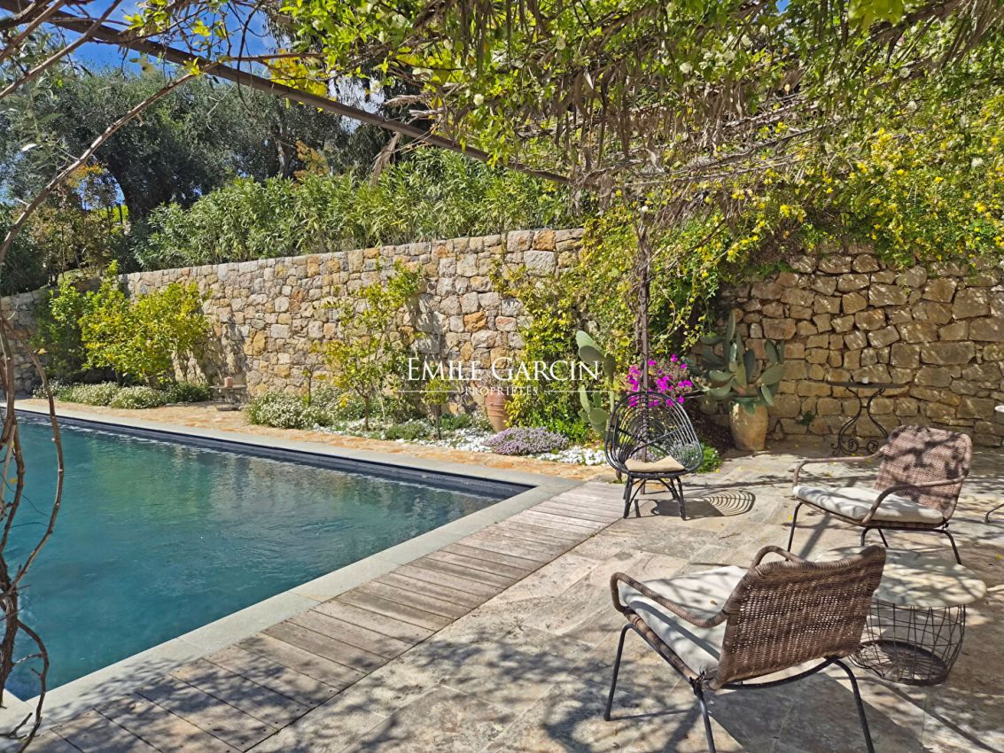 A 5 mn du village et de ses commerces, belle maison de charme d'environ 250m² ayant bénéficiée d'une restauration complète en 2022 . Au détour d'un petit chemin discret elle ne souffre d'aucune nuisance ni vis-à-vis avec des vues dominantes jusqu'à la mer et la campagne environnante. Sur 2 niveaux, elle se compose comme suit : Double séjour avec cheminée, ouvrant directement sur la grande terrasse, le jardin et la piscine. Salle à manger et cuisine entièrement équipée avec coin repas. Terrasse d'été couverte avec cuisine / barbecue. Un petit bureau donnant sur le jardin. A l'étage: 4 chambres double dont une aménagée en bureau, une chambre d'enfants, 1 salle de bains, 2 salle de douches complètes, un dressing dans la chambre principale. Auvent pour voiture. Places de stationnements.