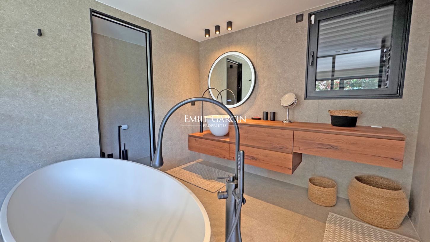 Les extérieurs sont à l'image du confort intérieur : un jardin méditerranéen soigneusement paysagé, une piscine de 15 mètres, un barbecue, des transats et une table pour les repas en plein air, le tout dans un environnement calme, sécurisé et très facile d'accès.