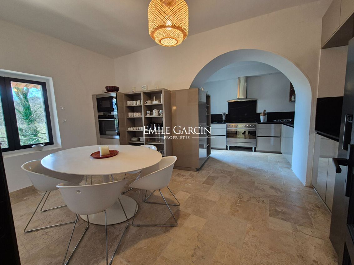 Au coeur d'un vaste parc de chênes et d'oliviers, en bord de rivière et dans un calme absolu, cet ancien château de 600m2 propose un séjour en toute intimité et dans une quiétude absolu à 5mn du centre d'Uzès. 12 chambres, 11 salles de bain, 3 salons élégants dont 1 sous une verrière baigné de lumière, une cuisine entièrement équipée, une terrasse ombragée pour déjeuner au bord de l'eau, une immense piscine et sa cuisine d'été creusée dans la roche assurant une température idéale en été. Un espace sauna pour la détente.
