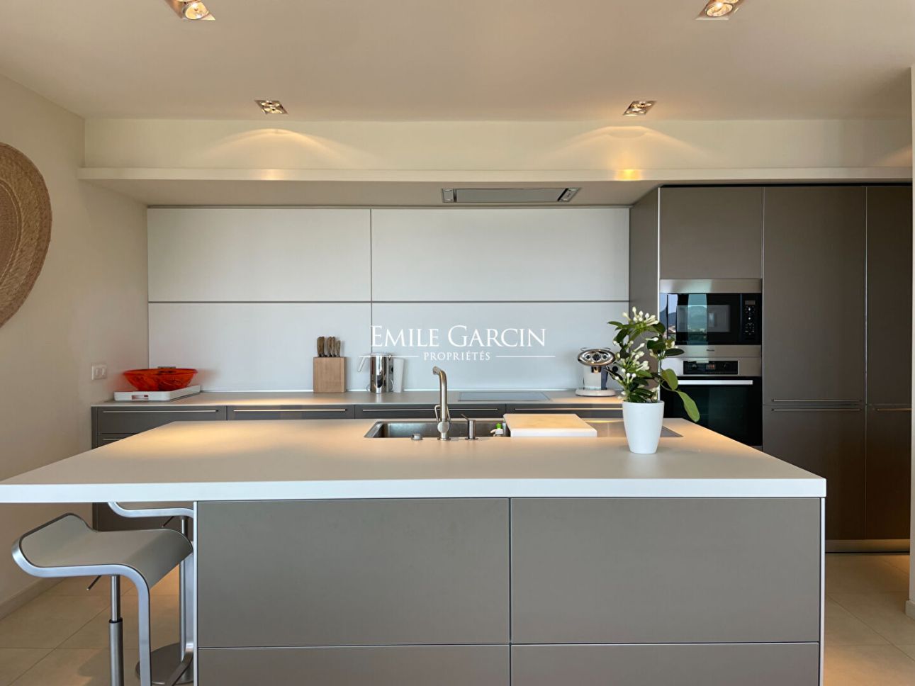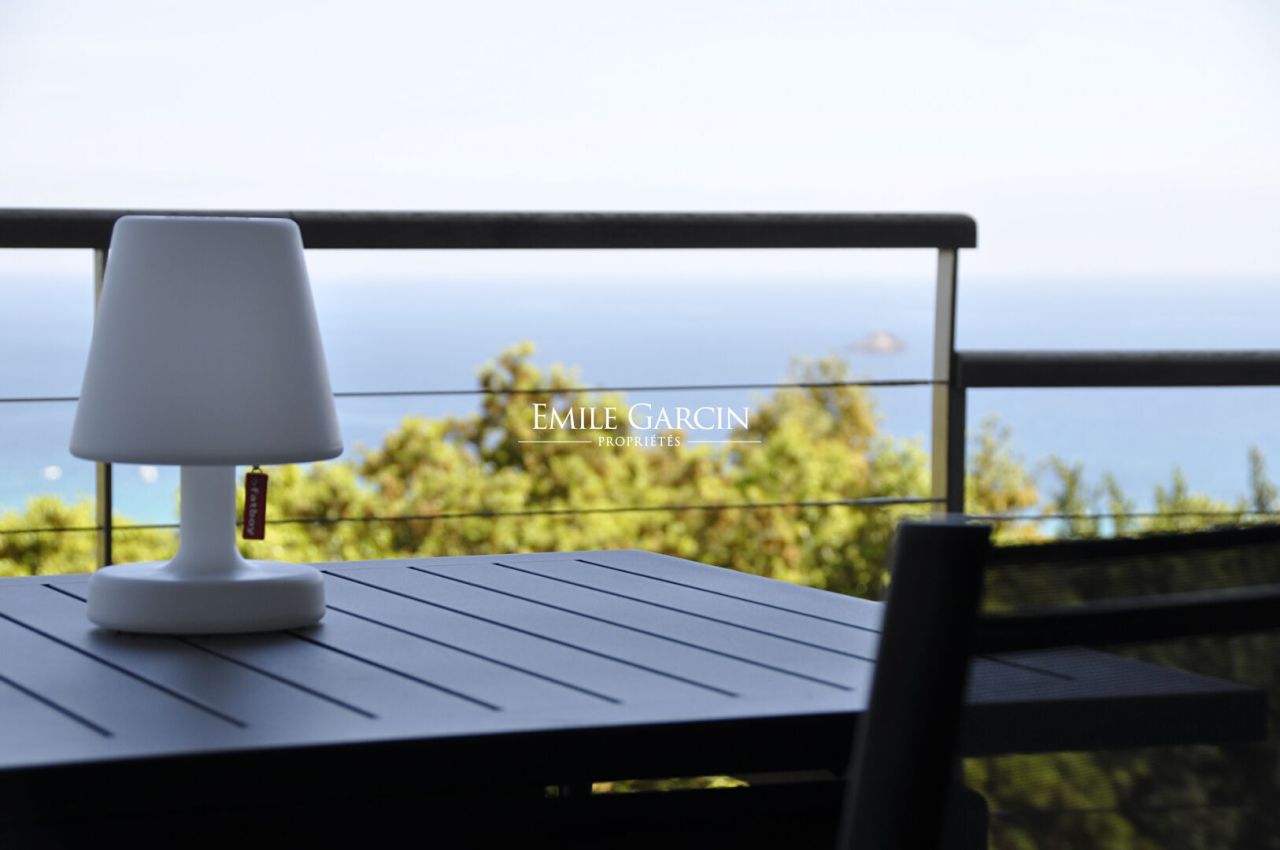 La piscine est à débordement et sécurisée par alarme, entouré d'un charmant jardin fleuri surplombant la mer.