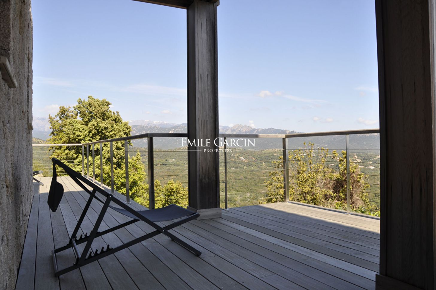 La Maison Ouranios, superbe propriété surplombant la mer d'un côté avec la baie de Pinarello et les montagnes de l'autre côté avec les « Aiguilles de Bavella » et le «Monte Rossu », un environnement aussi rare qu'exceptionnel. La plage est à 5 minutes en voiture.