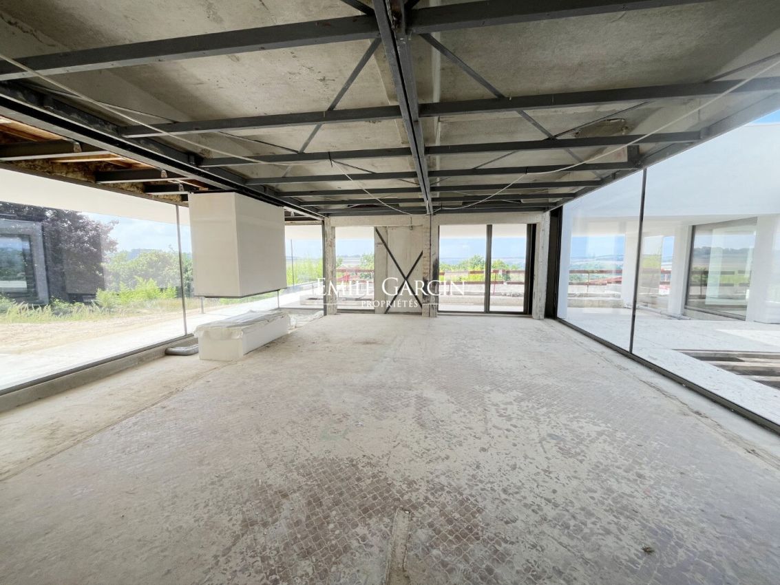 Entre Magny-en-Vexin et Gisors, à moins d'une heure de Paris, au coeur d'un environnement vallonné préservé, cette remarquable propriété à vendre de 35 hectares séduit par son calme absolu et ses vues à 360°. Dominant le paysage, la maison principale d'environ 1.000 m², construite dans les années 70 et entièrement réhabilitée (désamiantage, isolation, huisseries, façades, réseaux, chauffage, piscine), offre aujourd'hui une structure saine et moderne. Entièrement décloisonnée, elle constitue une page blanche à aménager selon vos envies. Un projet d'architecte propose de vastes pièces de réception, plusieurs suites, une bibliothèque, un bureau, ainsi qu'un espace bien-être. En sous-sol : buanderie, cave à vin et garages. Le domaine, alternant bois et prairies, comprend également un parc d'accrobranche neuf. Un lieu d'exception à l'abri de toute nuisance, idéal pour un projet de prestige.