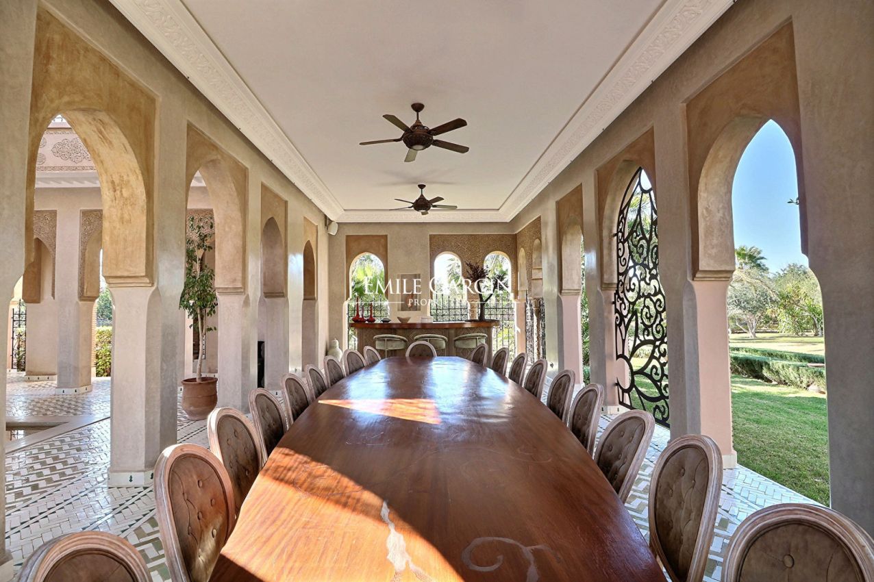 Edifiée sur un parc arboré de 1.3 hectares, exceptionnelle demeure de 1500m² alliant une architecture orientale andalouse . Maison principale de 800 m² , vastes réceptions, salle à manger, bureau et 4 suites ouvertes sur le jardin. 4 pavillons indépendants dont un avec piscine privative. Spa, tennis, écurie, piscine principale et nombreuses dépendances