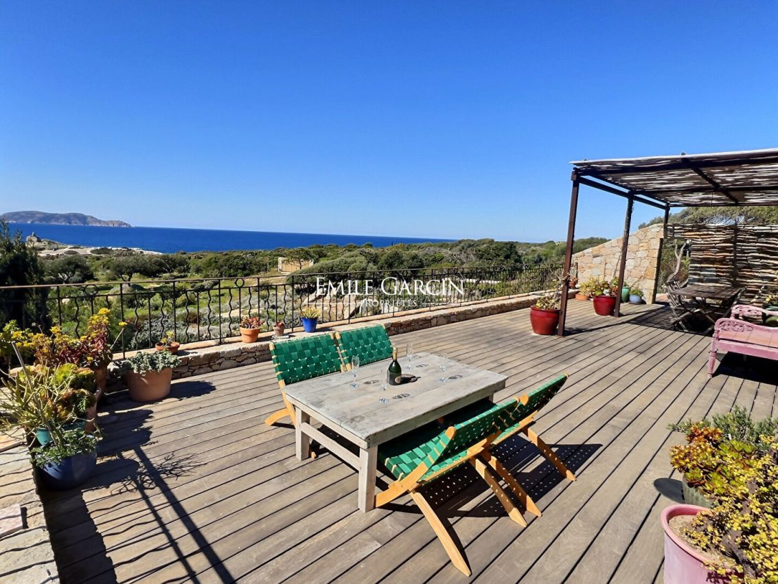 Sur deux niveaux, la villa dispose de 2 chambres climatisées avec salle de bain privative et vue mer, d'un séjour lumineux ouvrant sur une terrasse panoramique, et d'un accès direct aux sentiers côtiers et aux criques. La propriété comprend également une piscine 11 × 3 m, des espaces repas extérieurs et un barbecue. Le cadre idéal pour profiter de journées paisibles sous le soleil corse.