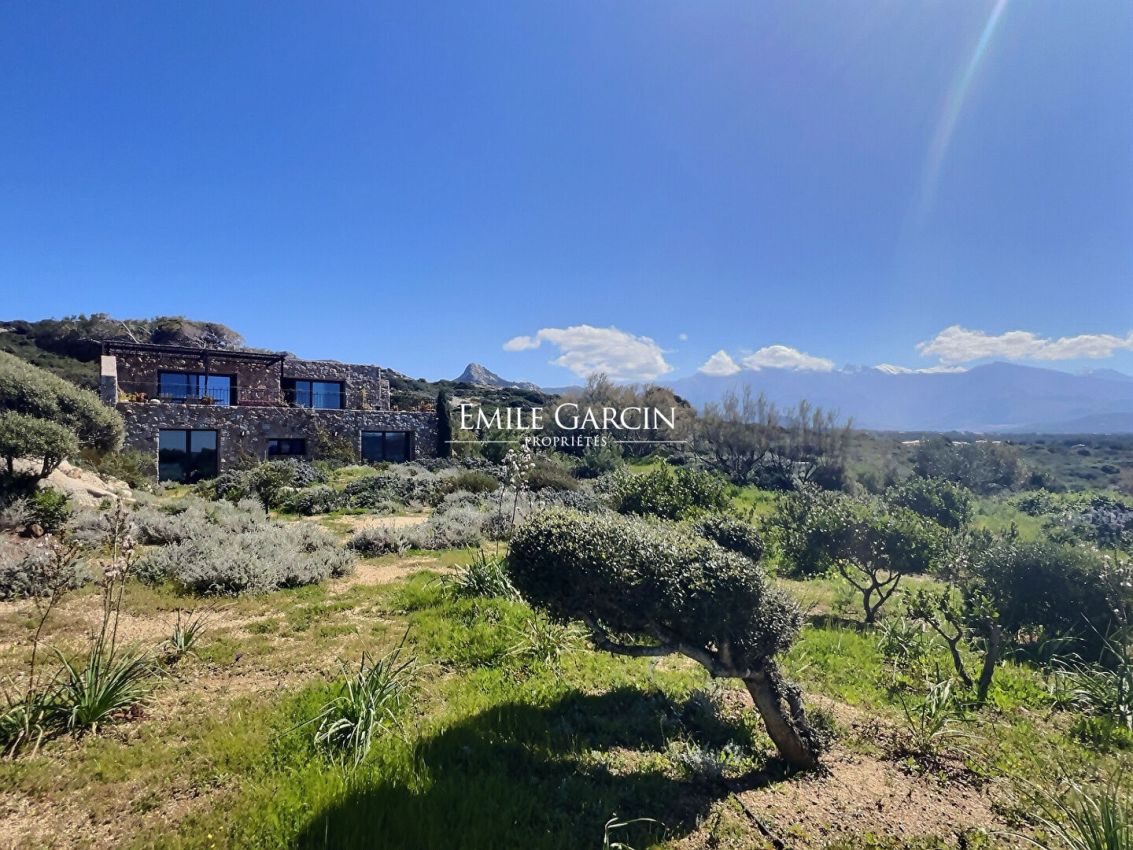 Nichée au coeur des paysages sauvages de Corse, cette villa exclusive offre une intimité totale et des vues imprenables sur le coucher de soleil et la Méditerranée. Entourée de maquis, elle invite à la détente au son des vagues et des cigales.