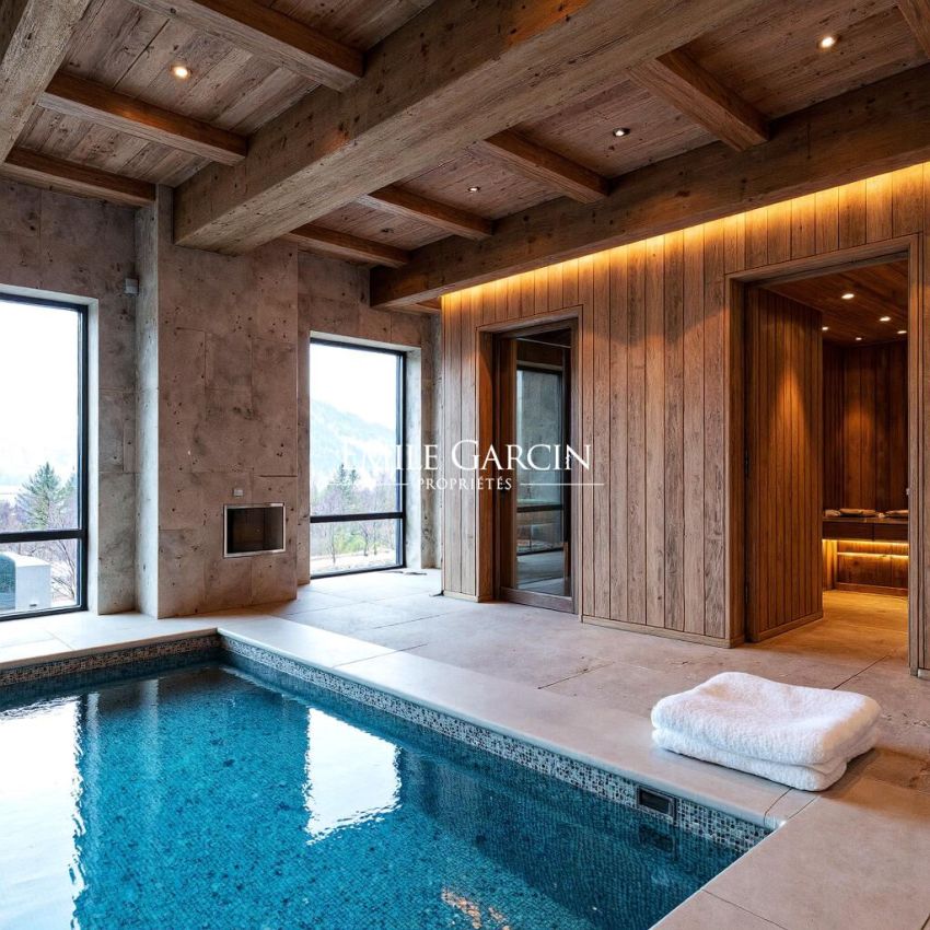 Édifié sur un terrain de 1 860 m², le projet prévoit la création d'une surface de plancher totale de 763 m², répartie entre la ferme principale et un chalet annexe, reliés par un bâtiment en sous-sol. L'ensemble développera 17 pièces, dont 4 chambres en suite, un dortoir, une master, un studio personnel ainsi qu'un grand séjour cathédrale très spacieux, idéal pour recevoir famille et amis dans un cadre chaleureux et raffiné.