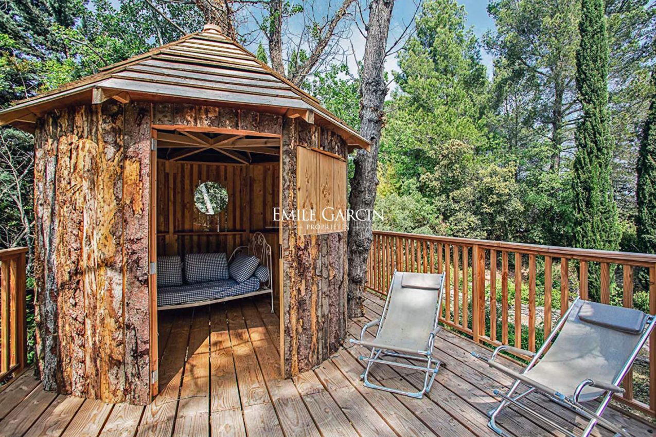 Plusieurs espaces de détente dans le jardin et une belle vue sur les Alpilles.