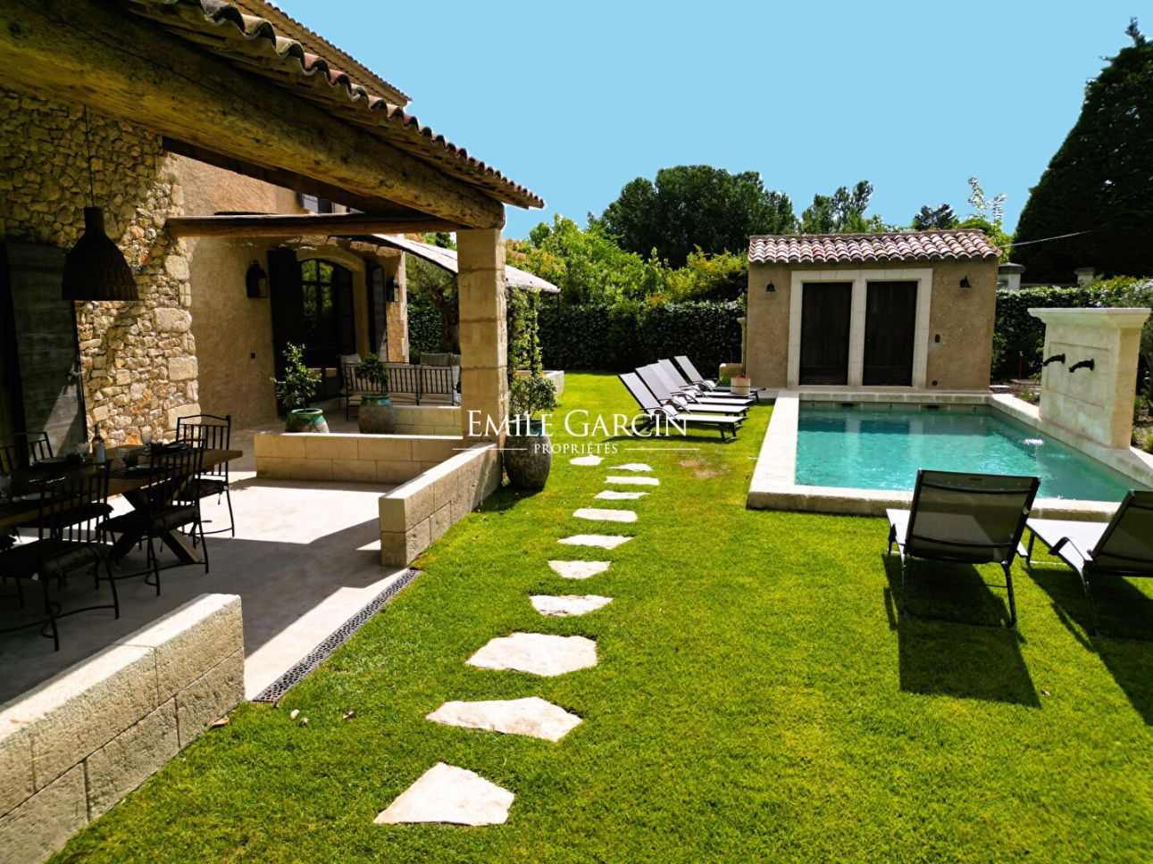 Très beau Mas à seulement 5 minutes à pied du village de Saint-Rémy de Provence. Une proximité immédiate avec les commerces et restaurants. 4 chambres, 4 salles de bains. Entièrement climatisé. Piscine chauffée 9 x 3.5 m , pétanque