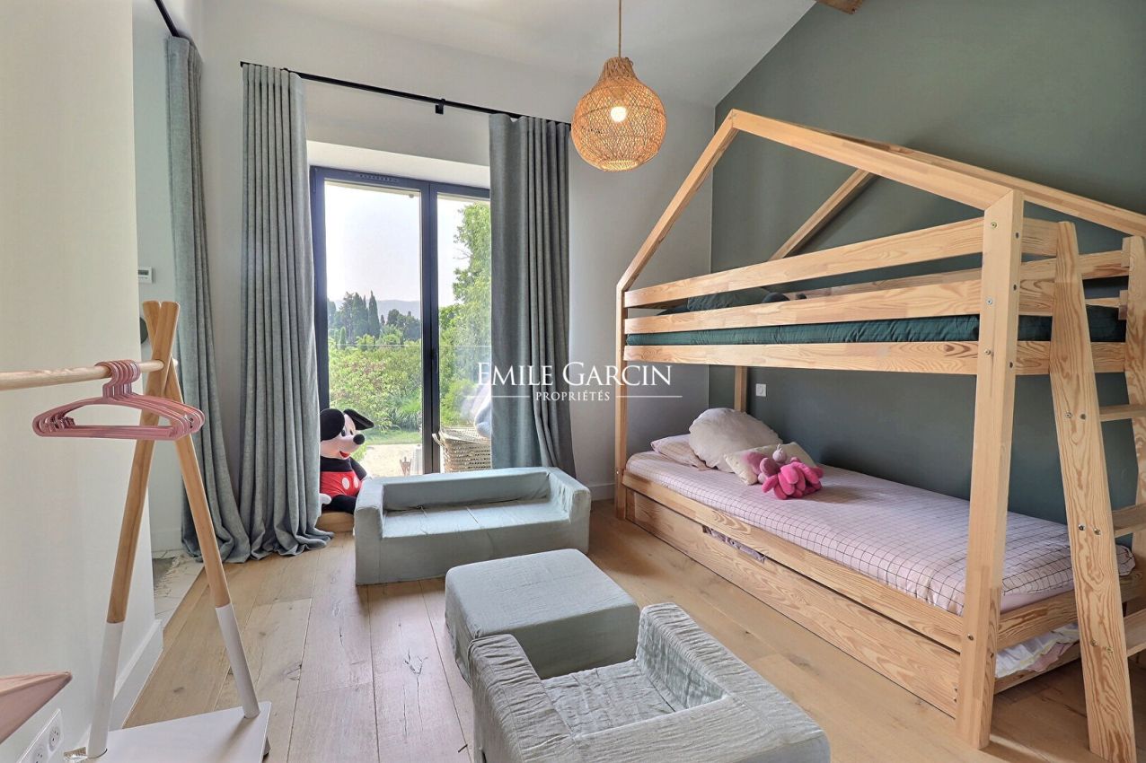 Situé en campagne à 5 minutes du centre-ville, ce ravissant mas rénové de 400 m² propose une décoration moderne et une très belle lumière pour des vacances en Provence réussies. 6 chambres6 salle de bain.