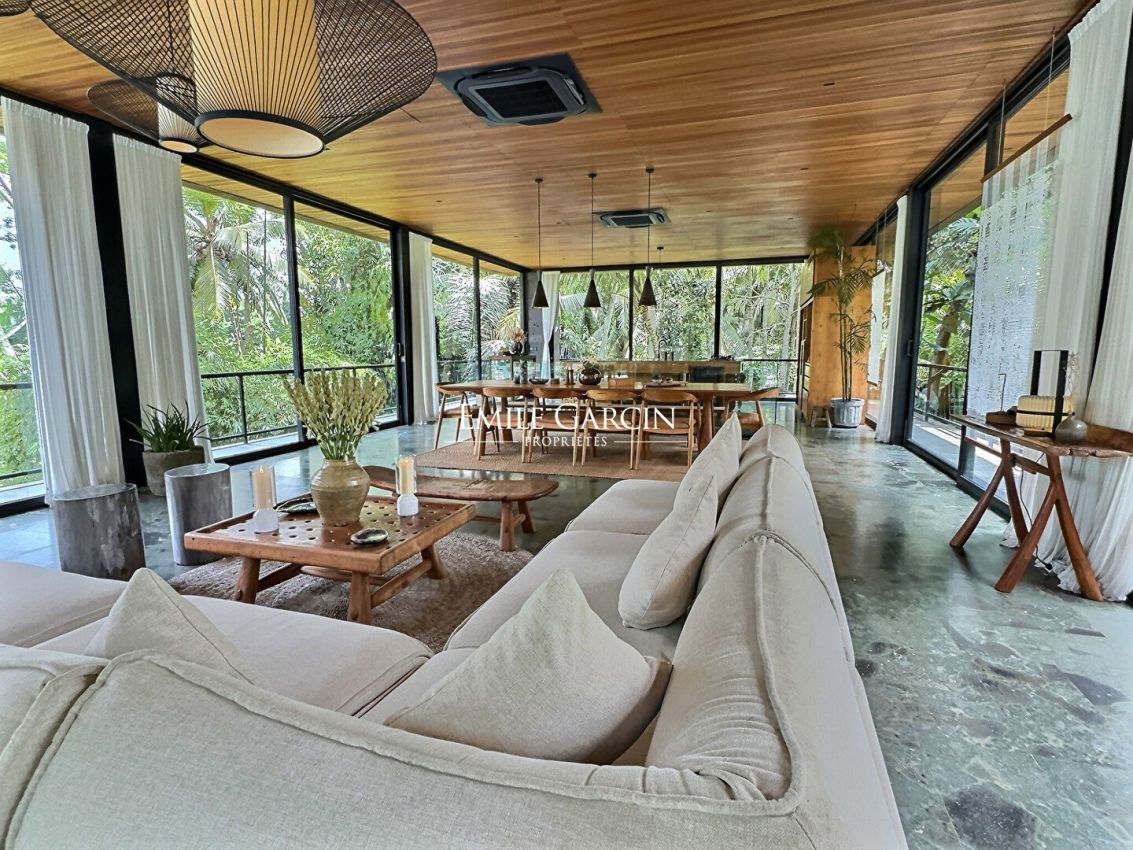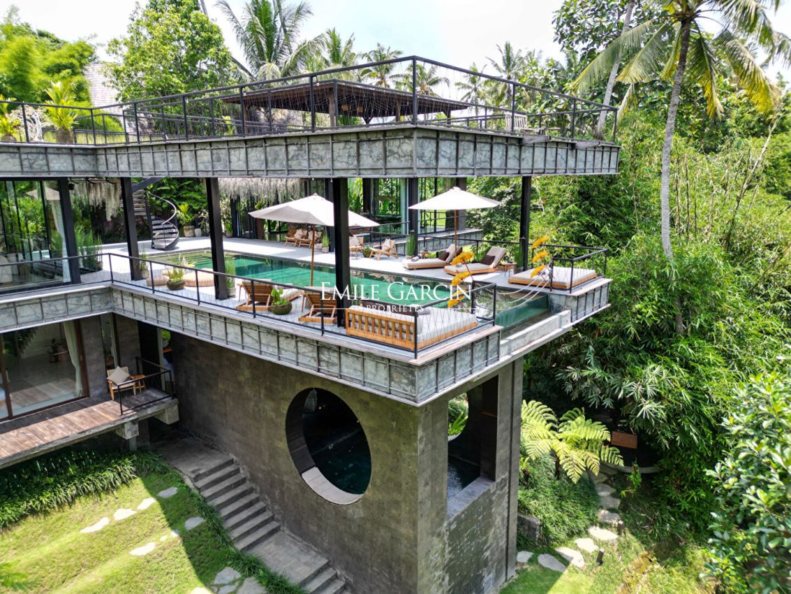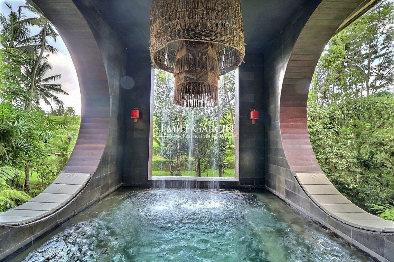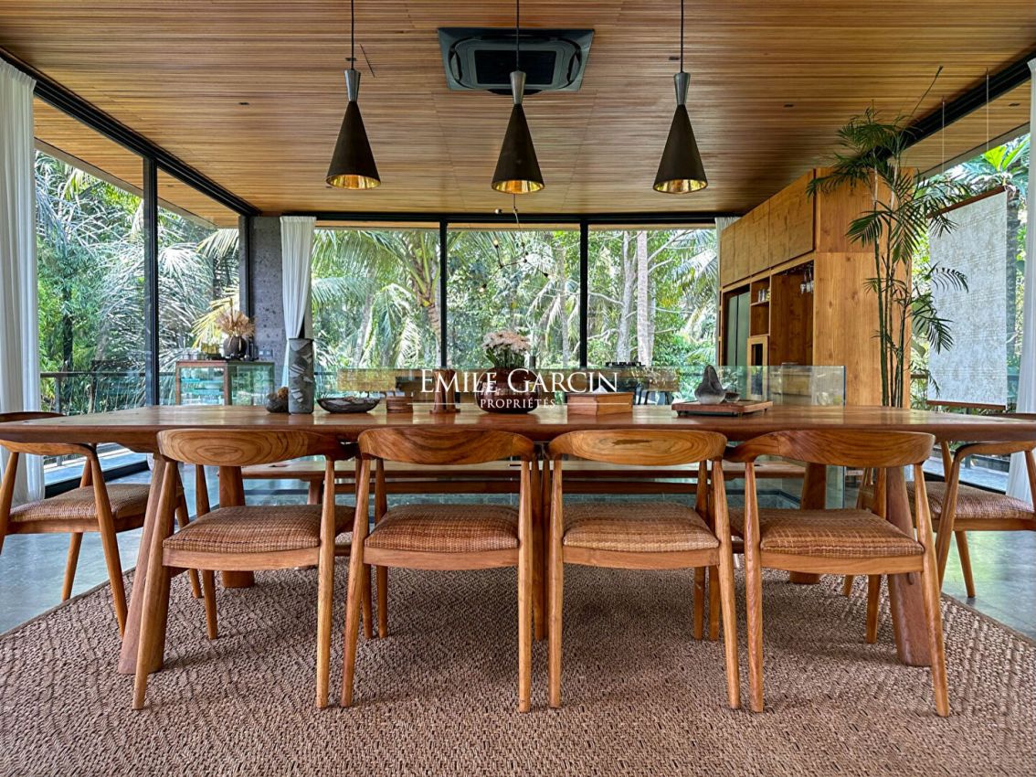 Nous vous proposons de vous plonger dans la jungle de Bali avec ce véritable sanctuaire de 5 chambres. Niché le long d'une rivière et entouré des rizières emblématiques de l'île, c'est un havre de paix et d'apaisement.