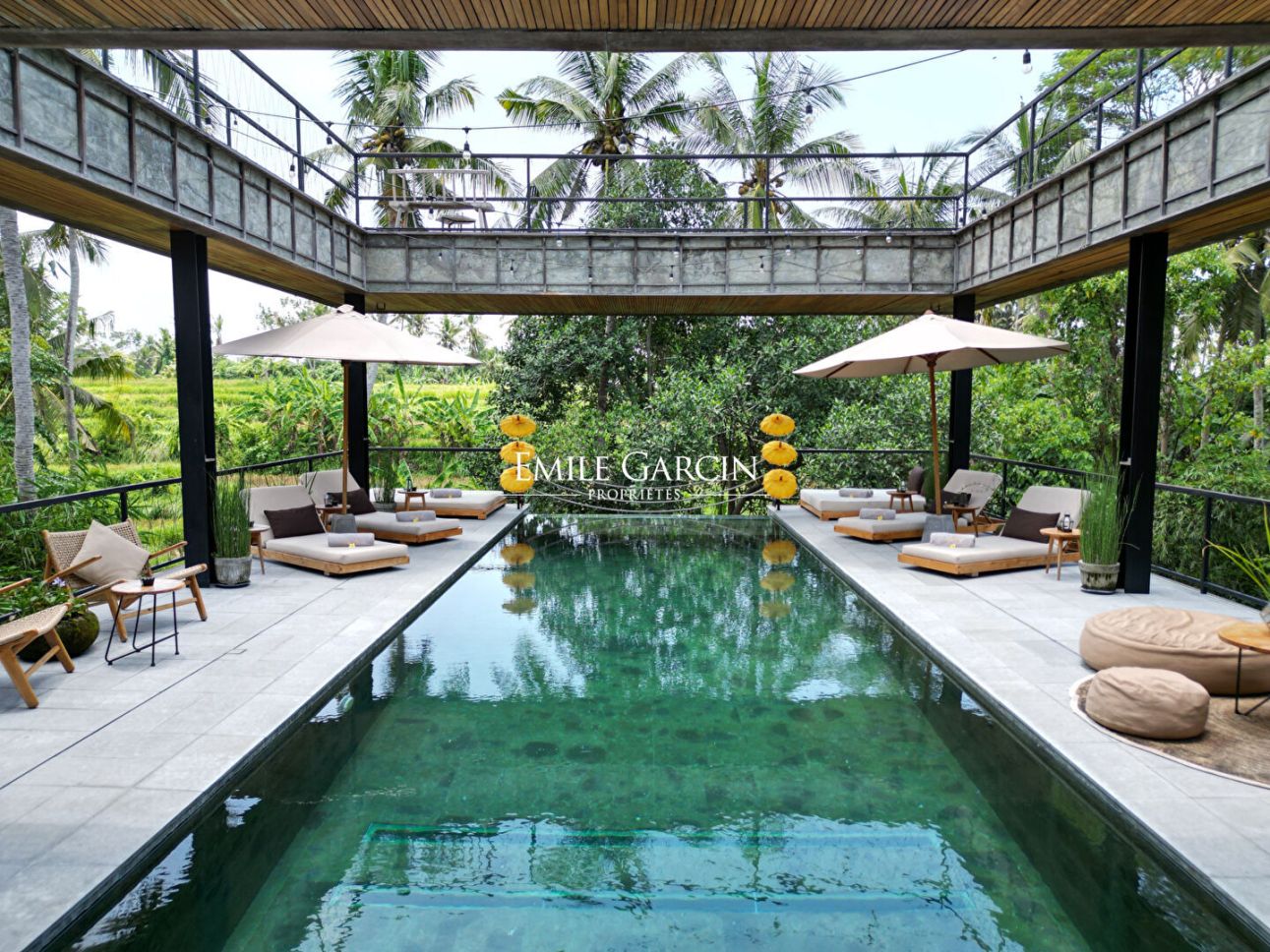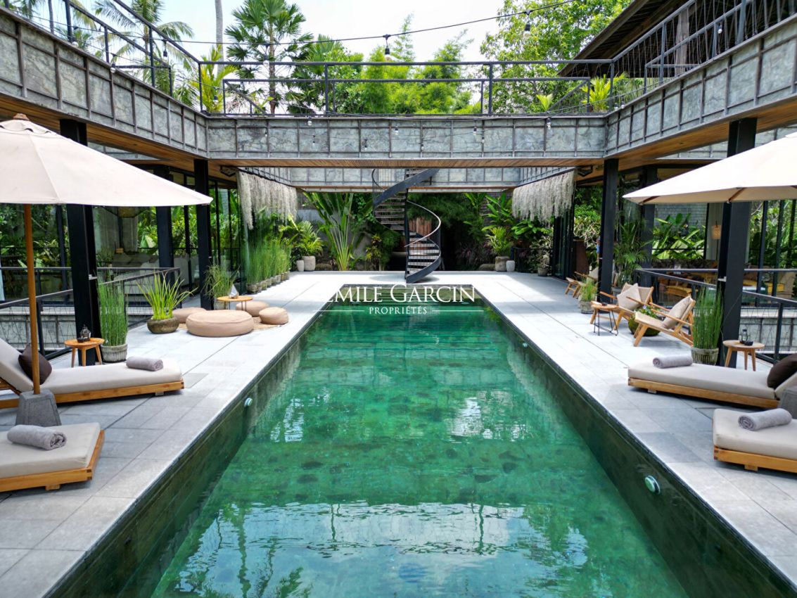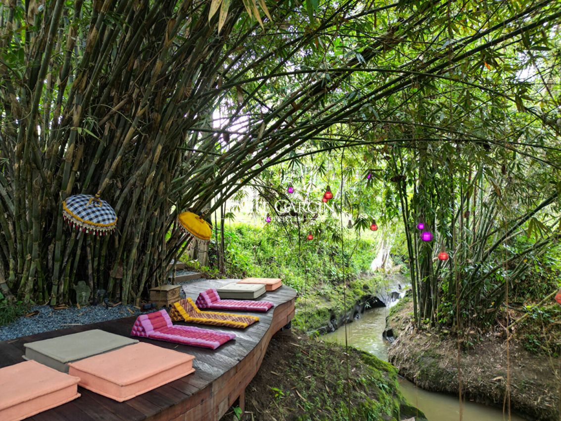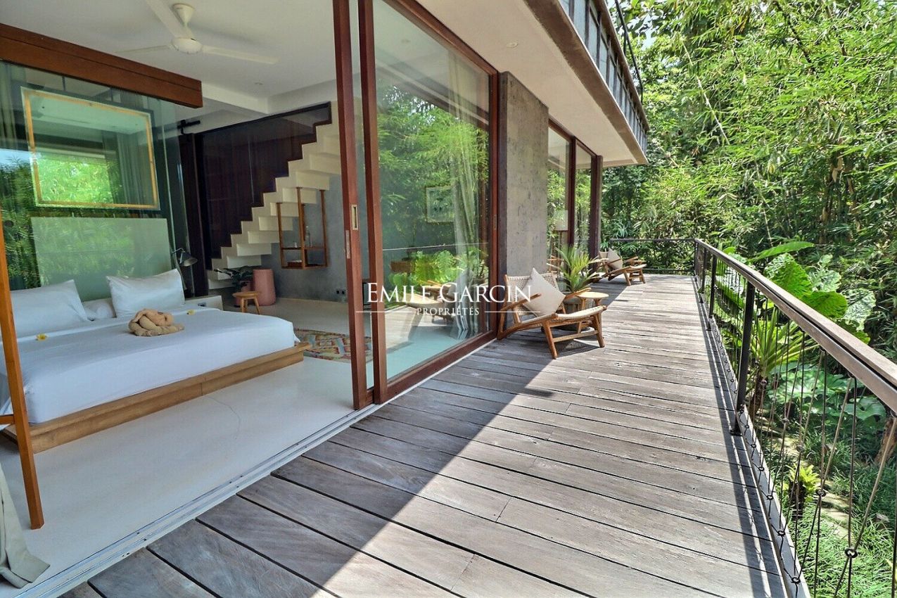 Nous vous proposons de vous plonger dans la jungle de Bali avec ce véritable sanctuaire de 5 chambres. Niché le long d'une rivière et entouré des rizières emblématiques de l'île, c'est un havre de paix et d'apaisement.