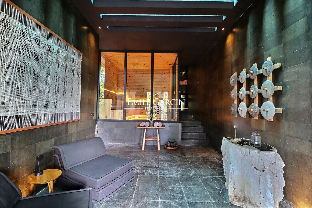 Doté d'une piscine à débordement de 16 mètres, perchée à 8 mètres de hauteur, d'un beau spa avec chute d'eau, d'un sauna, et de larges espaces extérieurs parfaits pour le yoga et la méditation, cette propriété est conçue pour inspirer et détendre.