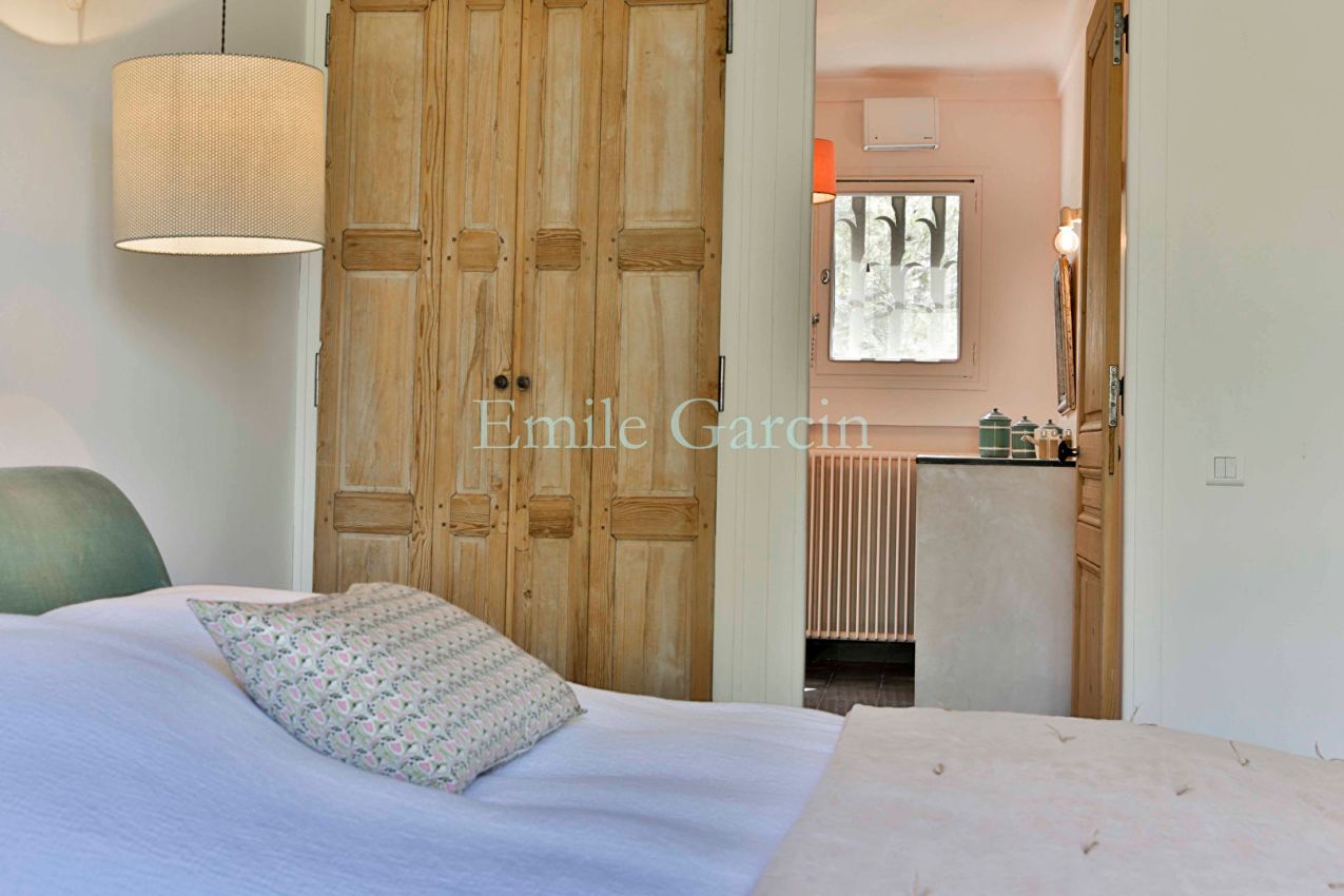 Dans un très bel environnement à quelques minutes à pied du centre de Saint-Rémy de Provence (1 5 - - km. Ce très beau Mas a été entièrement rénové avec goût l'atmosphère y est contemporaine et pourtant - - si familiale. Le confort est complet avec une salle de cinéma des dépendances habitables. Le cadre est idéal pour une évasion dans les Alpilles entre amis ou en famille. 8 chambres. 7 salles de bains.