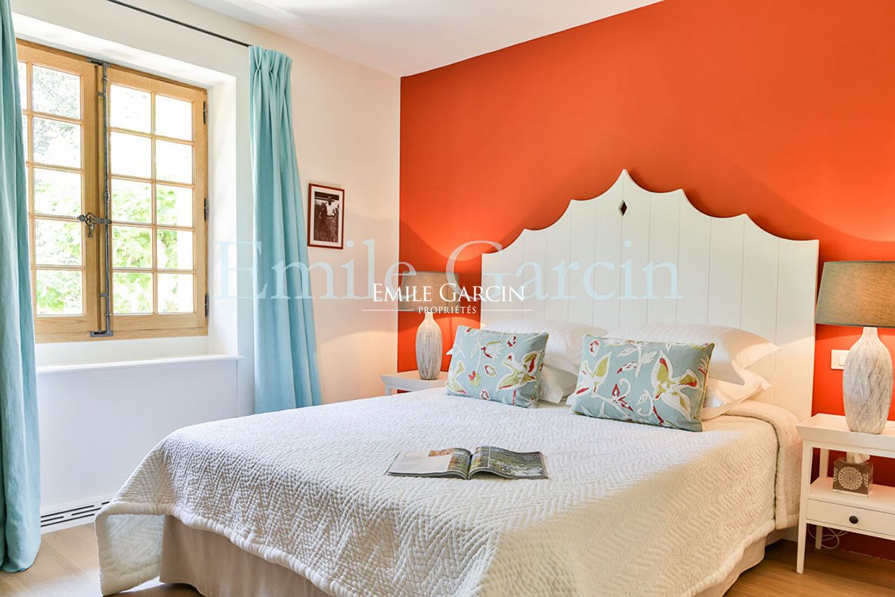 Belle bâtisse ayant conservée son architecture d'antan (fenêtres à meneaux, vitraux) totalement rénovée en 2015, offrant tout le confort moderne. Sur deux niveaux, elle se distribue ainsi : Rez-de-jardin : L'entrée dessert à droite la cuisine équipée et sa buanderie. En face une grande salle à manger avec une table pour 12 convives, communiquant avec la cuisine, et les pièces attenantes. A gauche, un grand salon avec piano, cheminée et télévision. A droite de la salle à manger, un petit salon de TV, puis une grande chambre avec salle de douche et toilettes. A l'exception de la cuisine, toutes les pièces ouvrent au sud sur une grande esplanade, à l'ombre des platanes, avec une grande table de déjeuner/dîner. A l'étage, cinq chambres et leur salle de bains. Il possède le confort et les équipements nécessaires pour passer d'excellentes vacances entre amis ou en famille.