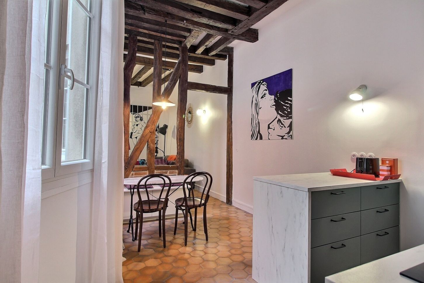 A proximité immediate de la Place des Vosges, charmant appartement typique de 39m² au 3e étage sur cour. Il est composé d'une entrée avec rangement, d'une cuisine ouverte aménagée et équipée avec un espace dinatoire et une table à manger, d'un séjour avec un coin bureau, d'une chambre avec dressing et d'une salle de douche avec WC. Très calme. Poutres apparentes , charme du Marais . Chauffage et eau chaude collectifs DPE: E LOYER: 2200 euros charges incluses BAIL CODE CIVIL UNIQUEMENT Honoraires selon nos barèmes LOYER: 2200 euros charges incluses