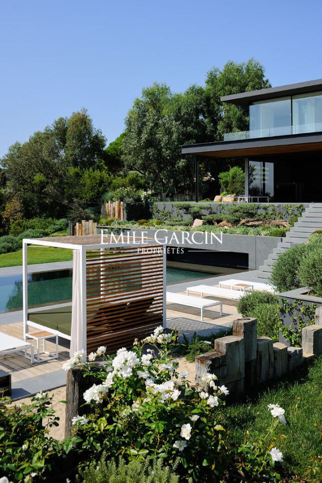 Dans le plus prestigieux secteur de Ramatuelle, face à la baie de Pampelonne, cette villa contemporaine de 500 m² à la location propose un espace de vie généreux, avec une vue mer panoramique époustouflante. Une attention très particulière a été portée sur le choix de tous les matériaux de grande qualité. Elle propose le confort et des prestations de luxe pour des vacances en famille ou entre amis.