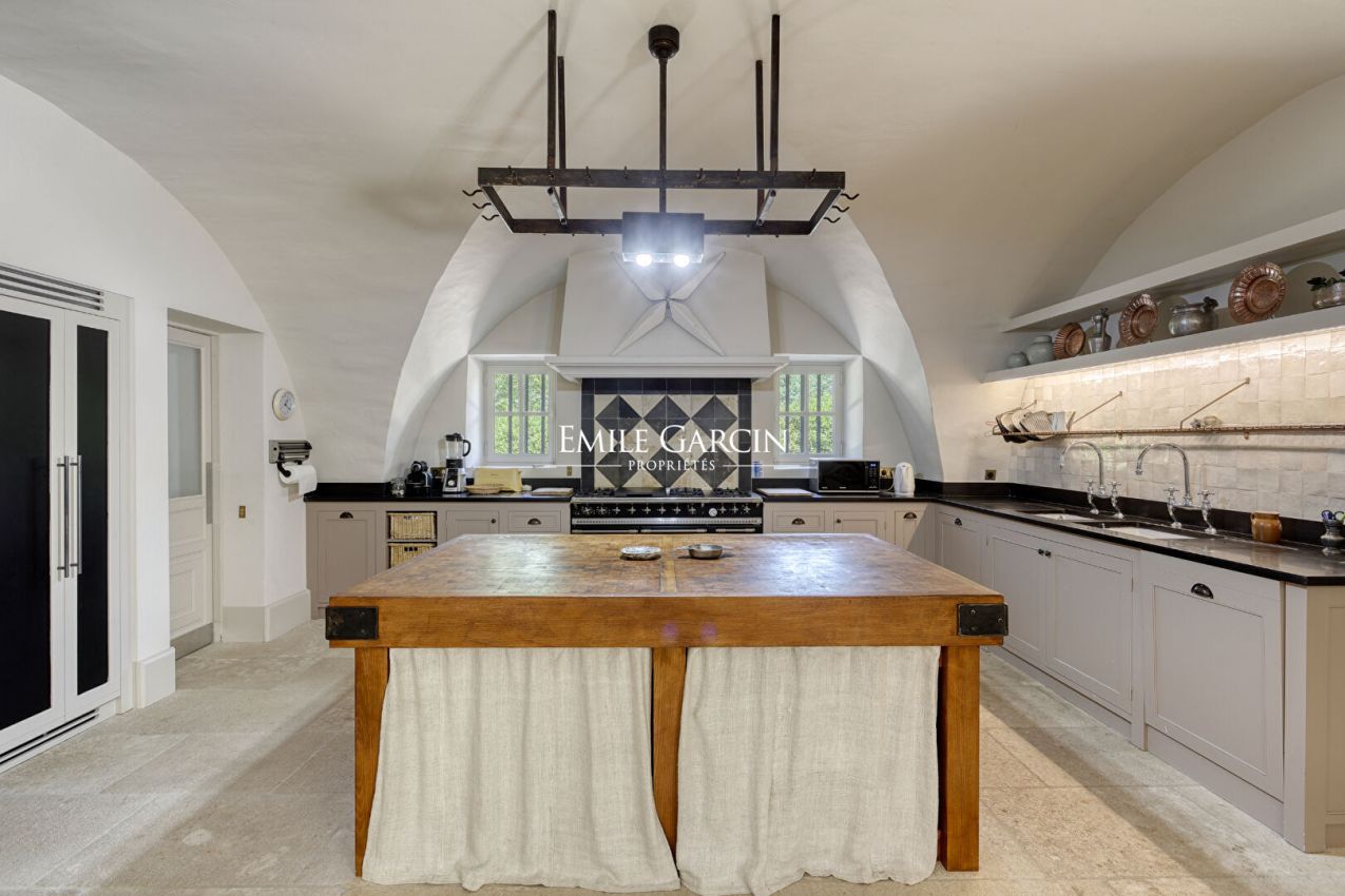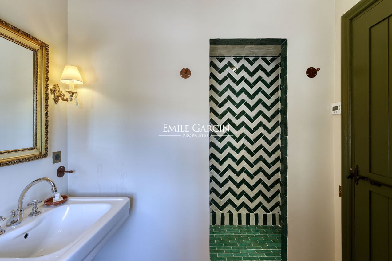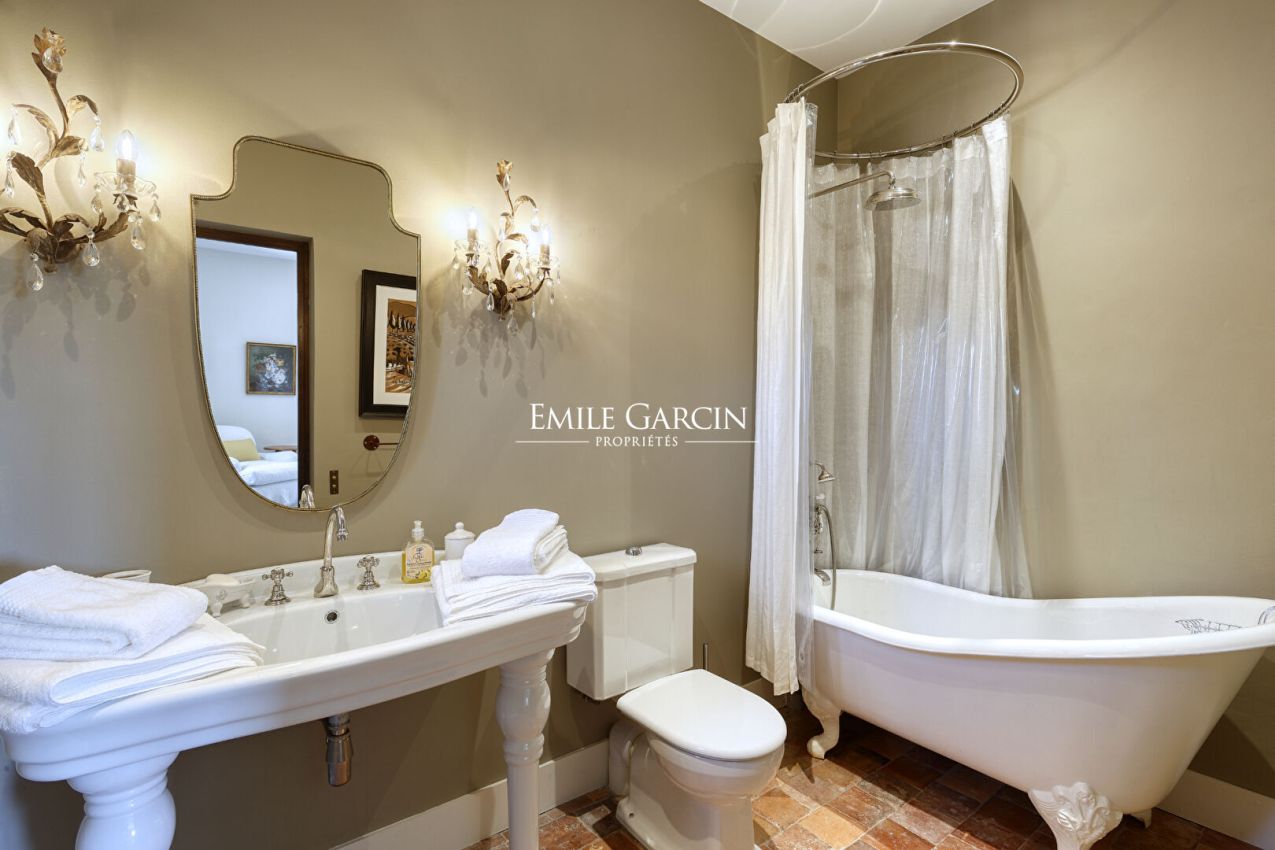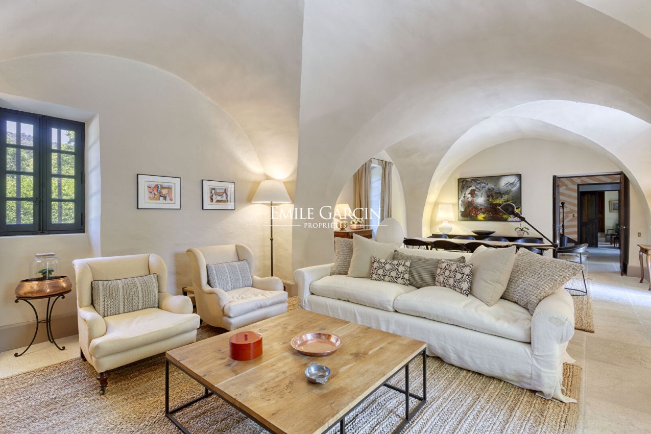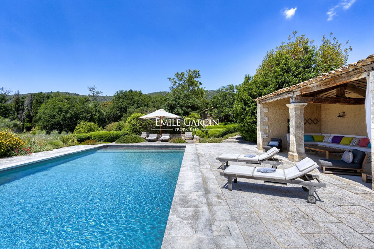 La Bastide de Vaunière située à 30 minutes d'Aix-en-Provence, dans le Sud Luberon, à 1,4 km d'un des plus beaux villages classés de France. Dans un lieu très privé au coeur d'un environnement rare et intact, au plus grand calme, majestueuse demeure provençale des XVII et XVIIIème siècles s'articulant autour d'une cour intérieure. Elle comprend 500 m² habitables sur plus de 11 hectares de terres, parc, oliveraie, potager, fruitiers, truffière, bassins, sources. Beaucoup de charme et de quiétude, l'une des plus belles propriétés de la région. 6 chambres, 6 Salles de bain, 17 personnes maximum - Piscine chauffée 13 x 6 m. Salle de fitness/danse accessible sur demande