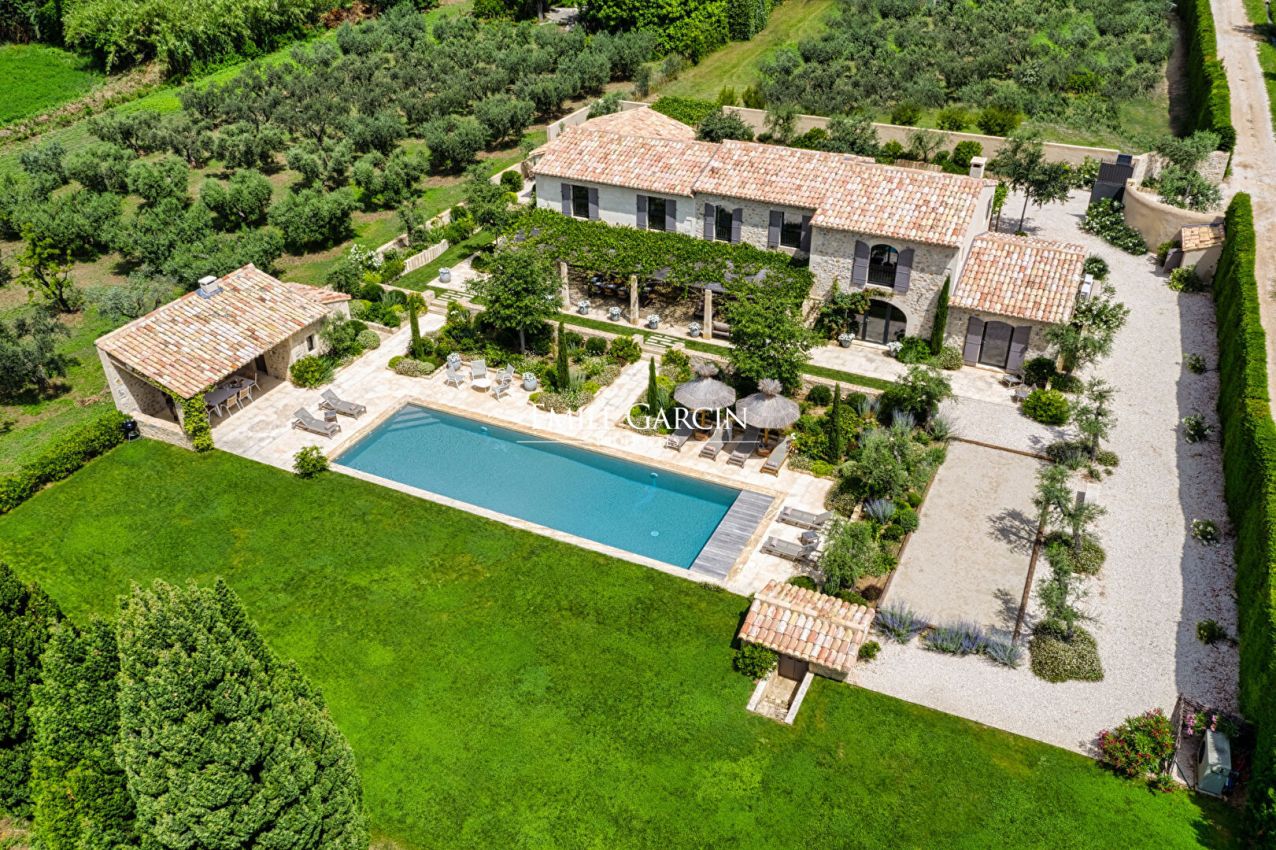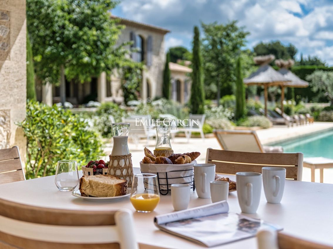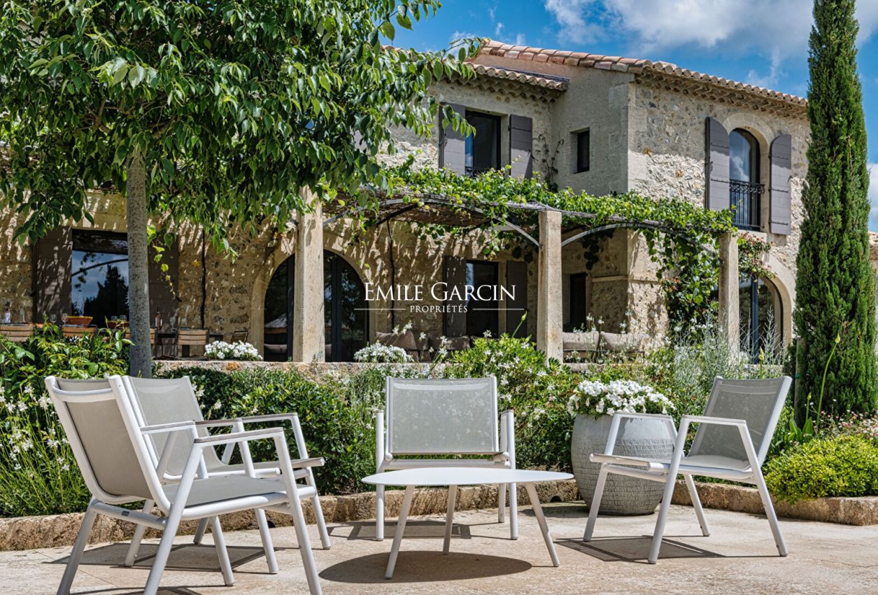 Au coeur des Alpilles - Magnifique maison de 290 m² offrant une vue totalement dégagée sur 3 hectares de prairie. La maison offre 5 chambres et 5 salles de bains, salle de sport, climatisation. Grande piscine de 16 m/ 5 m sécurisée par un volet électrique, poolhouse. Terrain de pétanque. Plusieurs espaces de détentes.