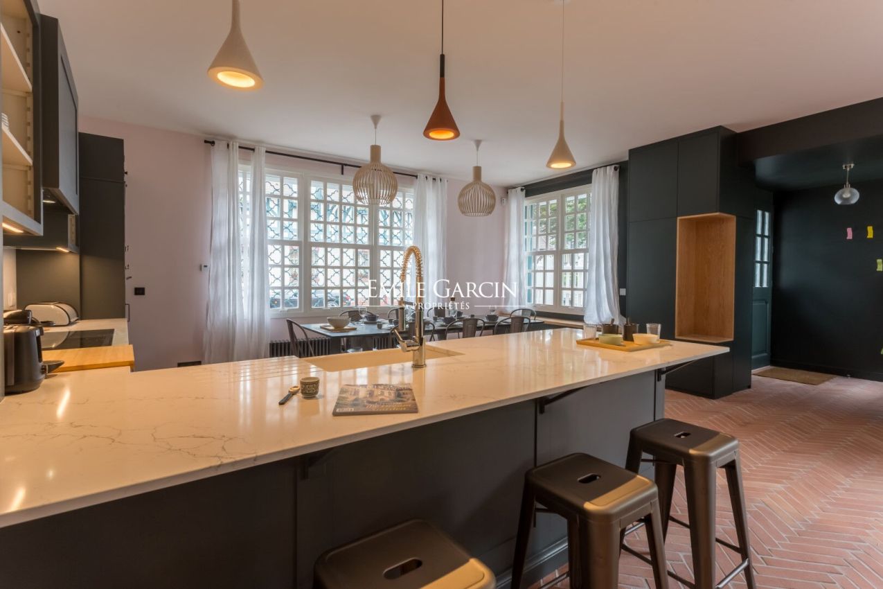 En Normandie, à Deauville, en plein coeur du Triangle d'Or et à quelques pas de la mer. Emile Garcin vous propose à la location saisonnière, cette très jolie maison entièrement rénovée. Elle comprend une belle entrée, un grand salon, une cuisine spacieuse, un salon télévision, 2 chambres avec leurs salles de douches et une salle de sport. A l'étage, une salle de bains, 3 chambres dont deux doubles avec une salle de douches et une avec 2 lits simples.