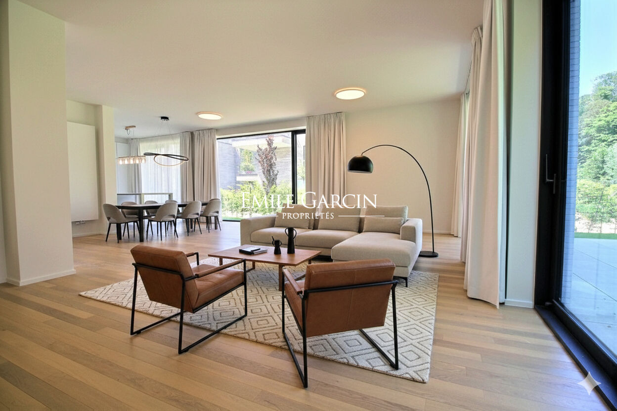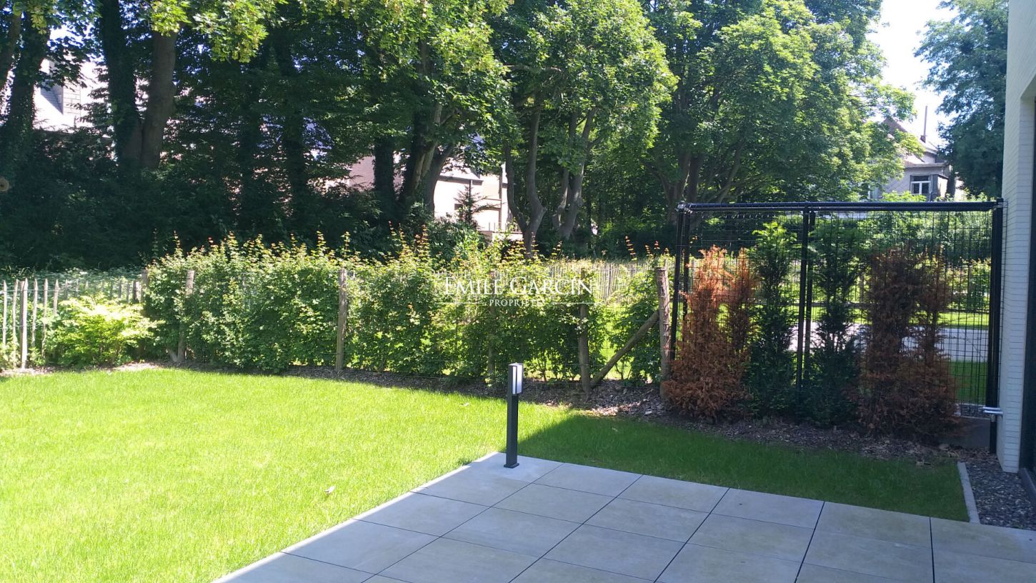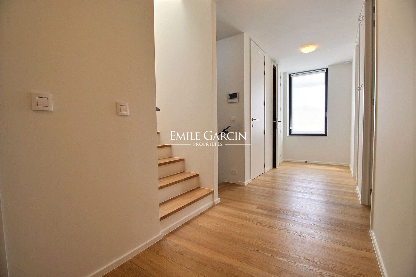 Idéalement située dans un clos résidentiel à proximité d'une réserve Natura 2000, magnifique maison neuve de 245 m² avec jardin paysagé et une terrasse de 21 m². Un hall d'entrée avec vestiaire et toilette visiteurs mène vers un espace de vie ouvert comprenant salon, salle à manger avec une cuisine américaine hyper équipée. A l'étage, un hall de nuit distribue 4 chambres avec placards intégrés, une salle de douches, une toilette séparée et une buanderie. Au 2e étage, spacieuse suite parentale d'environ 51 m² avec dressing et salle de bains (bains et douche) et une toilette séparée. Prestation de qualité avec de belles finitions élégantes et des réceptions baignés de lumière naturelles. La maison dispose également de rideaux et voilage à toutes les fenêtres. Carport, petit chalet de rangement extérieur, un emplacement de parking supplémentaire. PEB : B Charges forfaitaires : 75 euros/mois pour entretien jardins et collecte des déchets. Autres : Système d'alarme, vidéophonie, ventilation double flux (VMC), adoucisseur d'eau, toiture végétale.