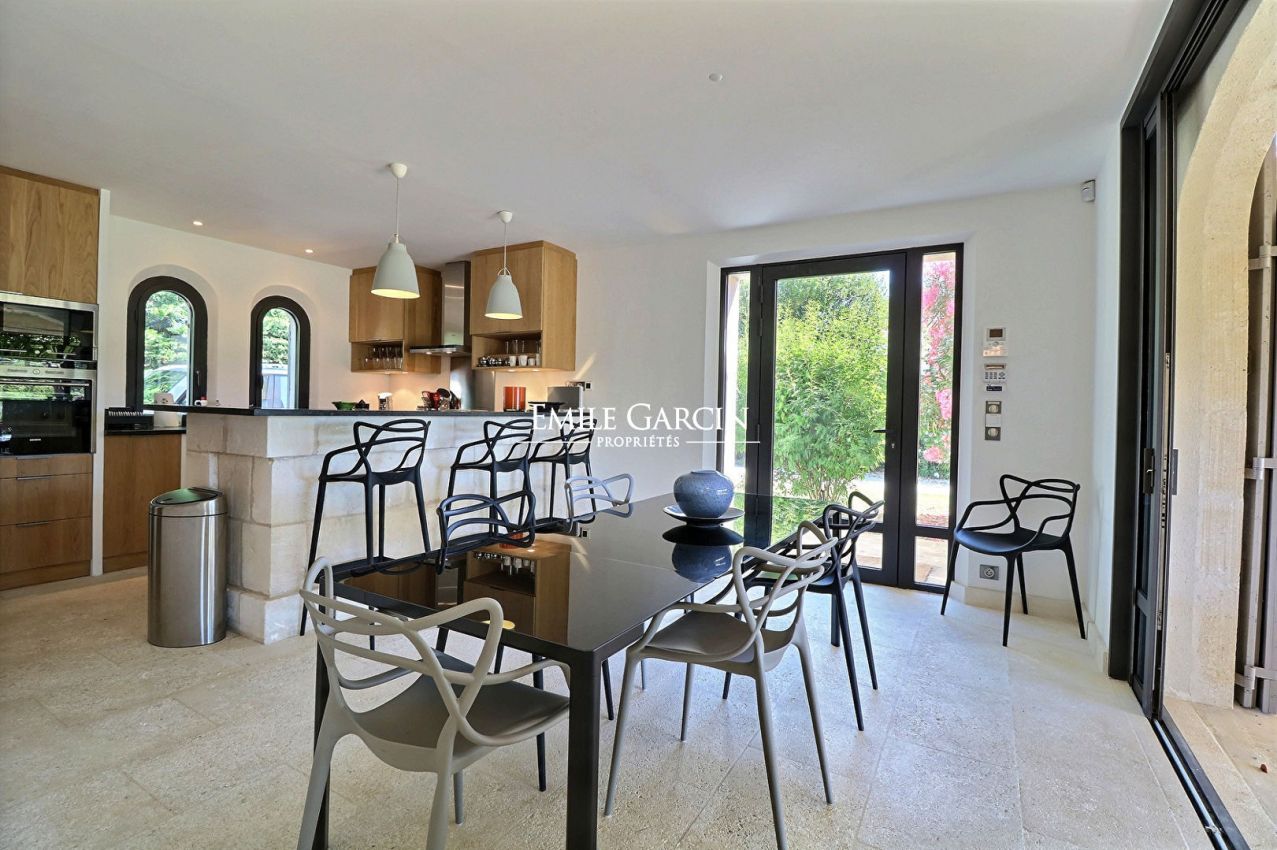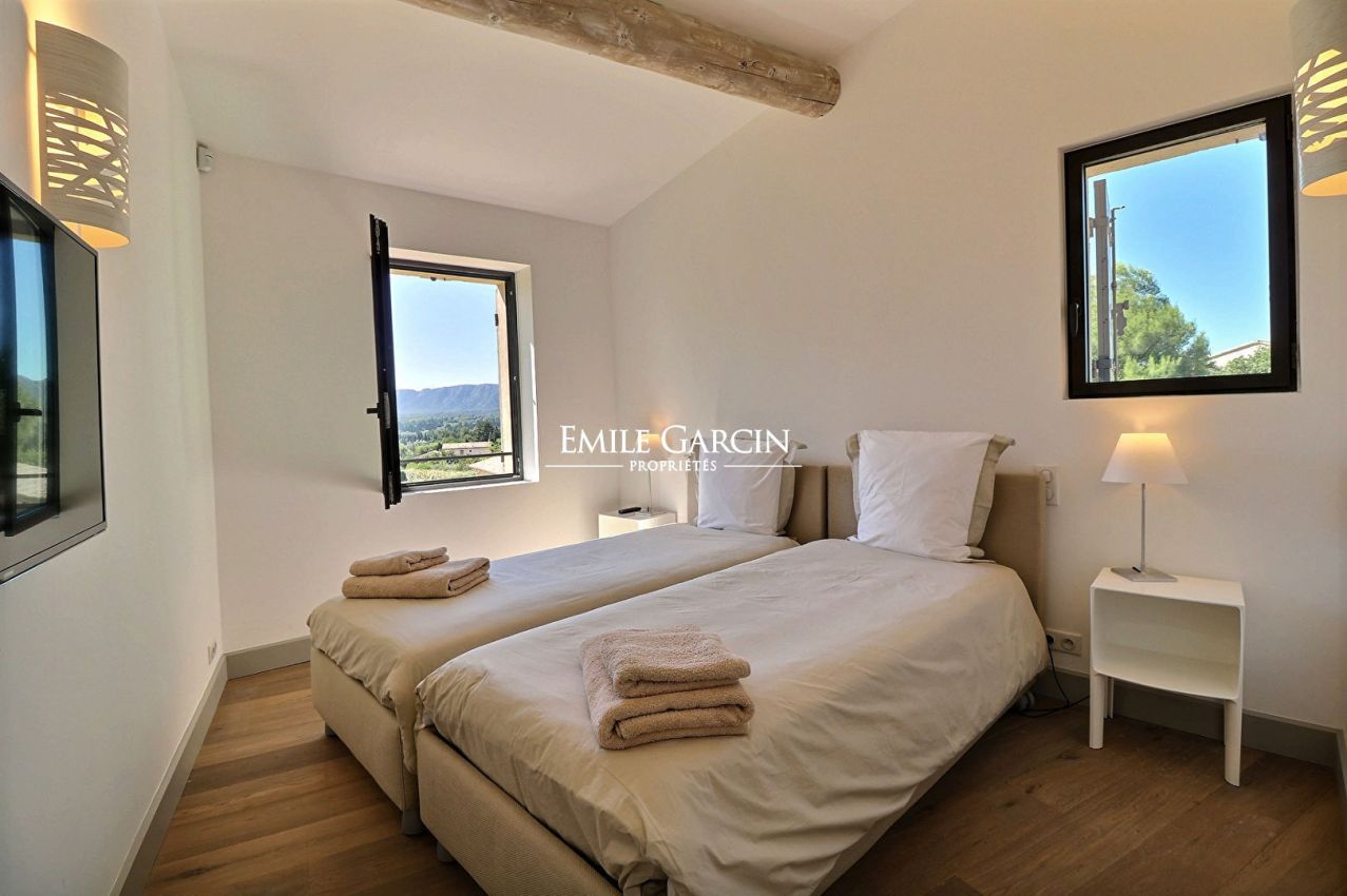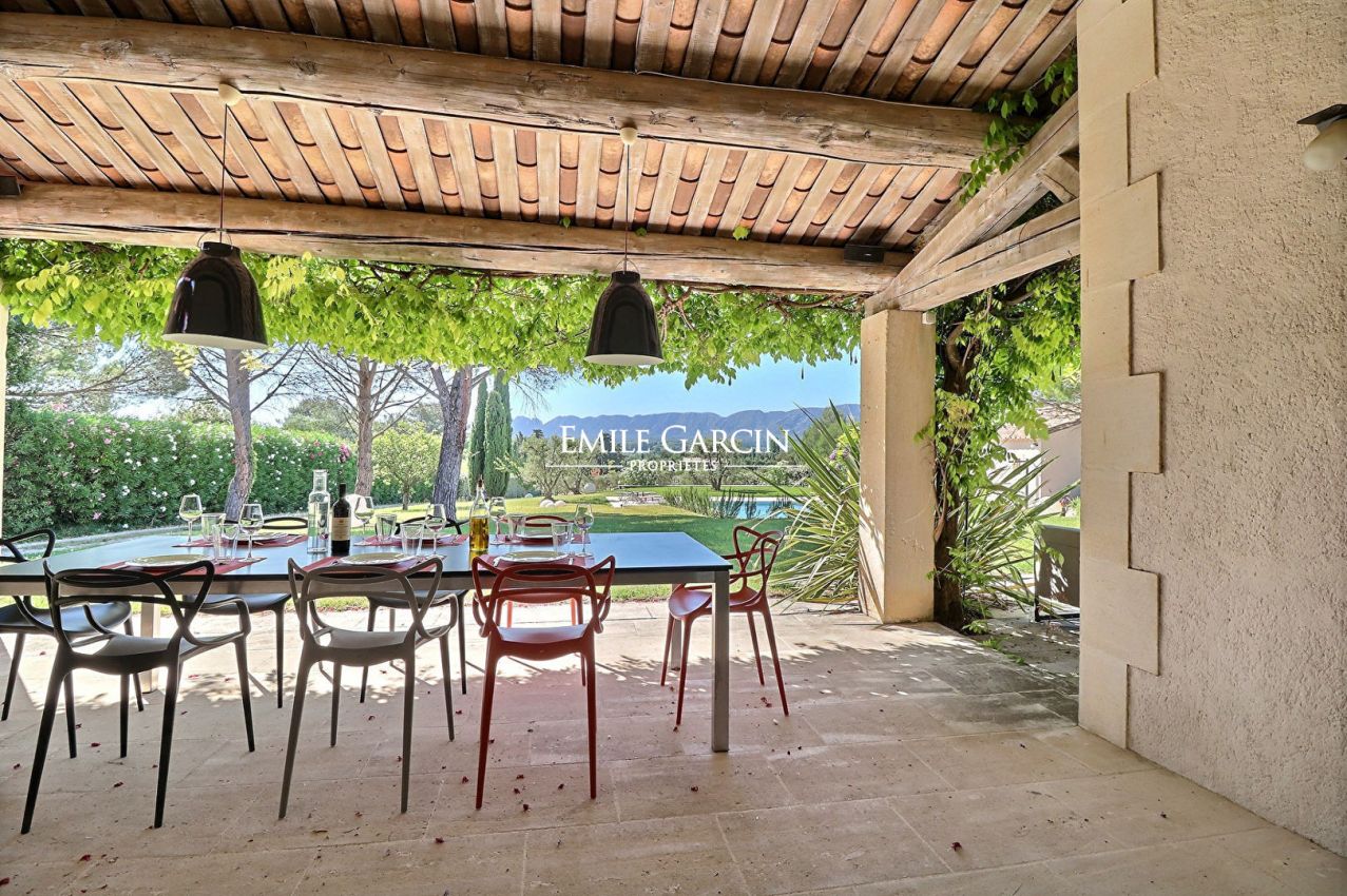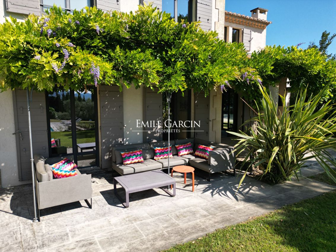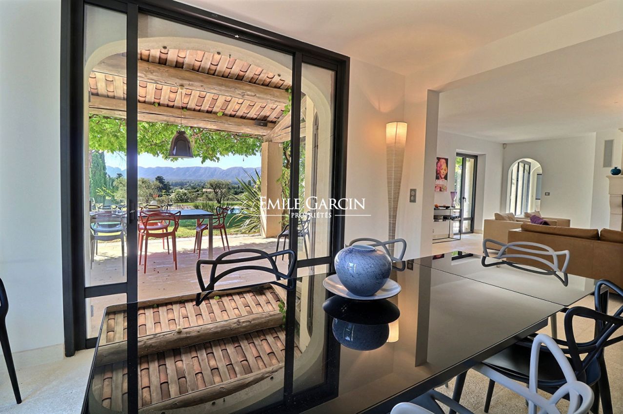 A Saint-Rémy de Provence, en position dominante, avec une belle vue dégagée sur les Alpilles, jolie maison de construction récente aux belles prestations : 4 chambres en suite climatisées, cuisine équipée, salon, salon de télévision climatisé, terrasse avec coin salon, coin repas (plancha), pool-house avec cuisine d'été (plancha) et piscine chauffée (11x6m) sécurisée par un volet. Terrain de pétanque.