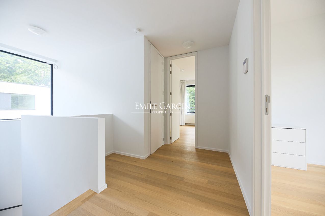 Idéalement située, dans le quartier du Prince d'Orange, proche du Lycée Français, dans un clos résidentiel privé à proximité d'une réserve Natura 2000, magnifique maison neuve de 190 m² (selon PEB) avec jardin paysagé et terrasse de 27 m².