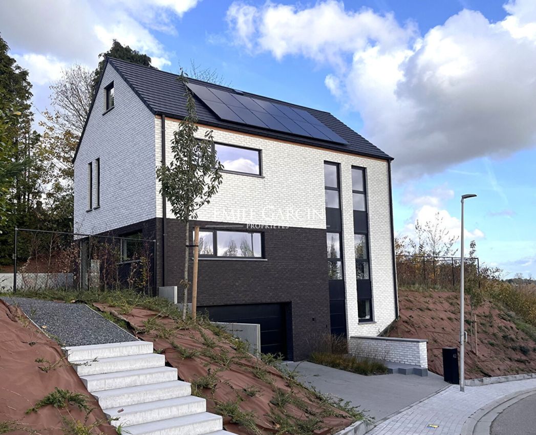 Située dans le quartier recherché de L'Ermite, cette maison contemporaine basse énergie (PEB A), construite il y a deux ans, séduit par son architecture élégante, et ses matériaux haut de gamme.