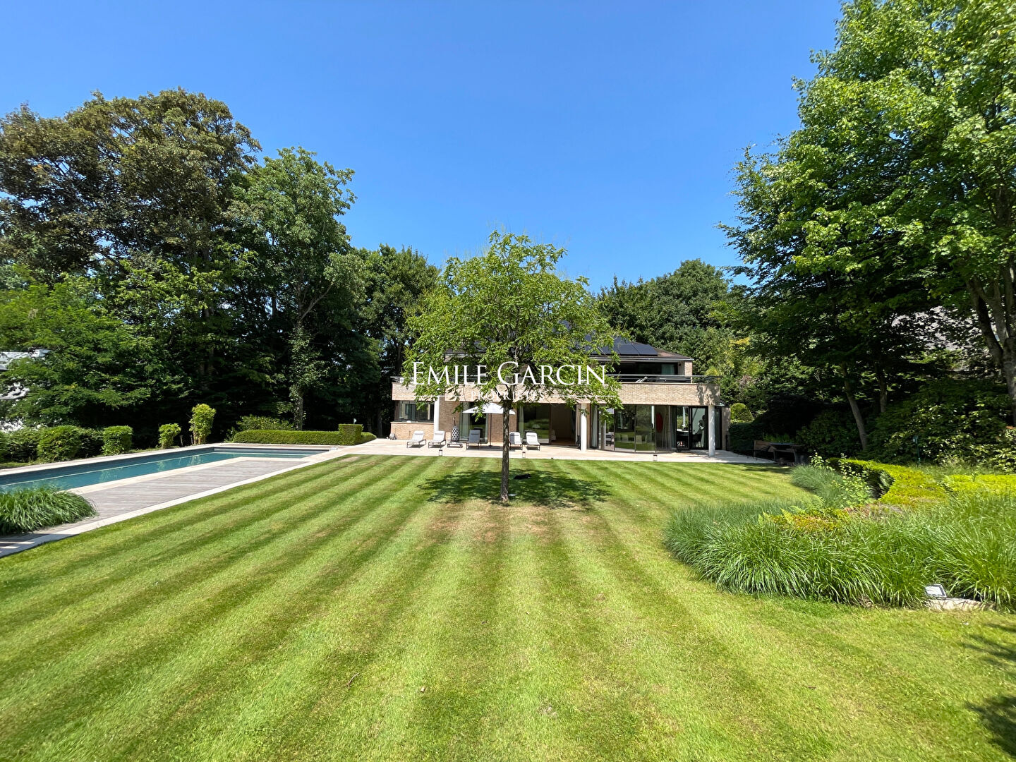 Elle se compose d'un superbe hall d'entrée, de très belles réceptions avec double salon et cheminée, un bureau ouvert, une agréable salle-à-manger séparée et une grande cuisine dinatoire avec office et buanderie. Toutes les pièces sont bordées par de grandes baies vitrées et s'ouvrent sur un joli jardin et des terrasses orientées sud-ouest. Un espace bar avec salle de fêtes et terrasse avec pergola complètent l'ensemble. Au 1er étage, une chambre des maîtres avec une grande terrasse plein sud et vue sur l jardin, deux dressings et sa salle de bains/douche attenante avec toilette.