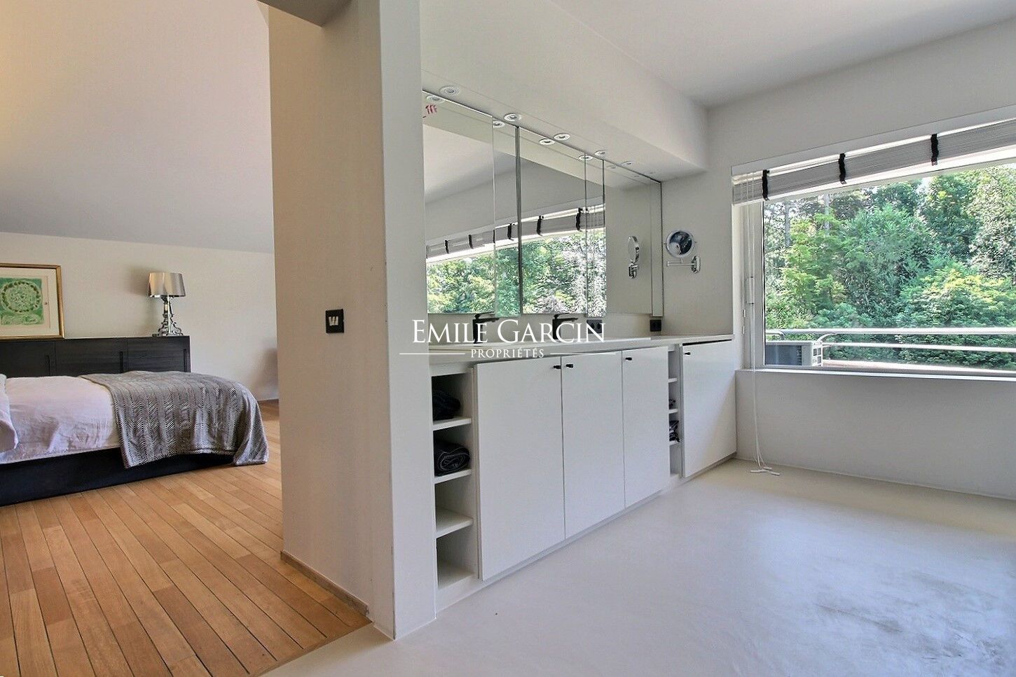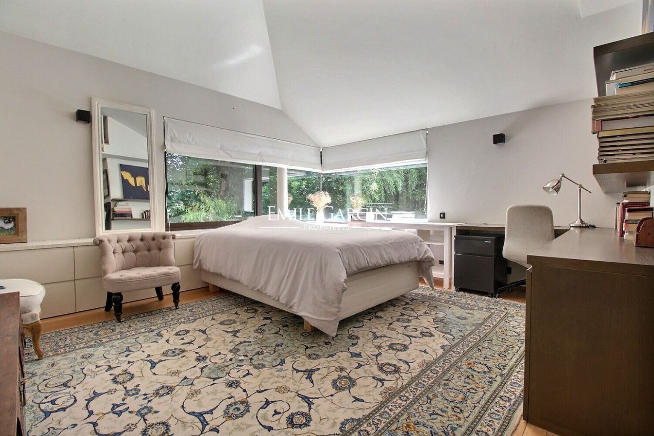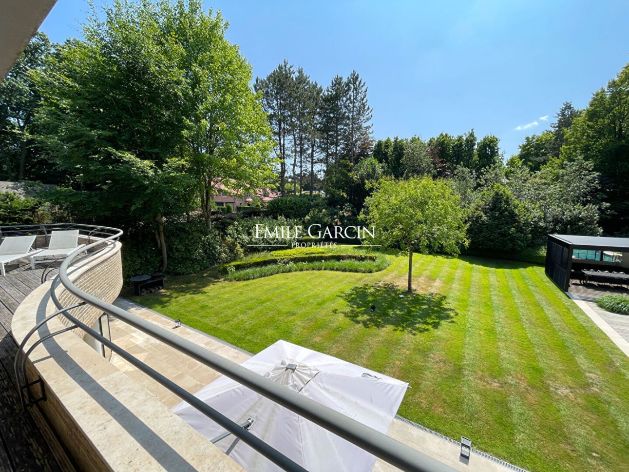 Elle se compose d'un superbe hall d'entrée, de très belles réceptions avec double salon et cheminée, un bureau ouvert, une agréable salle-à-manger séparée et une grande cuisine dinatoire avec office et buanderie. Toutes les pièces sont bordées par de grandes baies vitrées et s'ouvrent sur un joli jardin et des terrasses orientées sud-ouest. Un espace bar avec salle de fêtes et terrasse avec pergola complètent l'ensemble. Au 1er étage, une chambre des maîtres avec une grande terrasse plein sud et vue sur l jardin, deux dressings et sa salle de bains/douche attenante avec toilette.