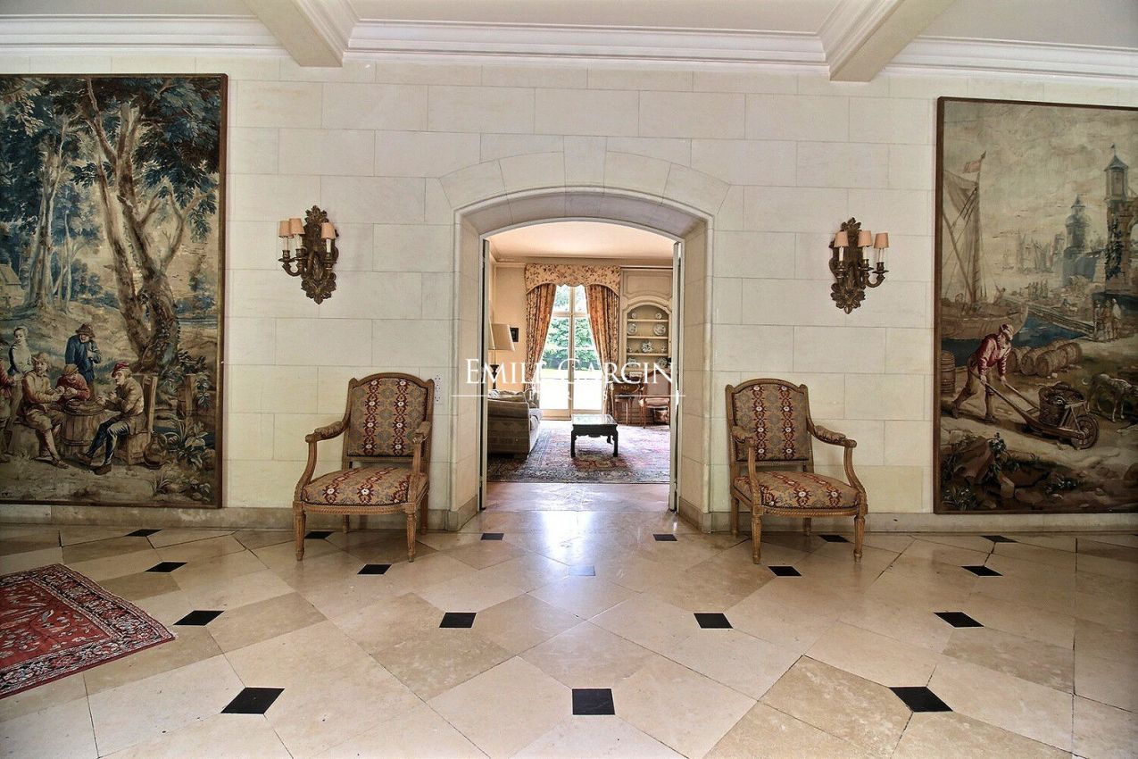 Cette demeure d'environ 550m² est composée de spacieuses réceptions donnant sur une vaste terrasse et le parc. Un élégant hall d'entrée, un vestiaire, de vastes réceptions comprenant un beau salon, un bureau, un petit salon et une agréable salle à manger s'ouvrant sur un jardin parfaitement orienté ainsi qu'une grande cuisine avec une entrée de service et un salon enfants.