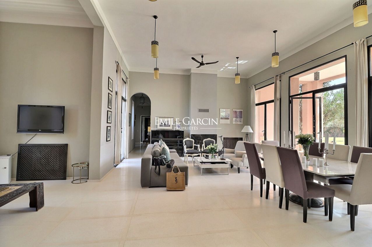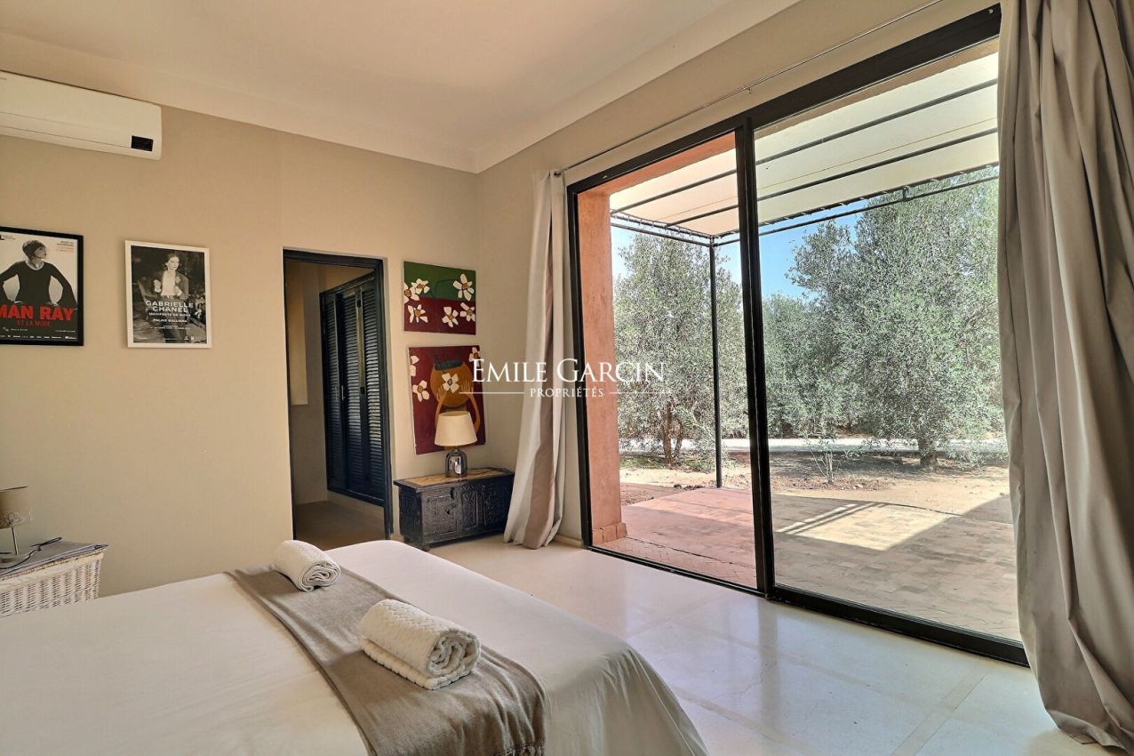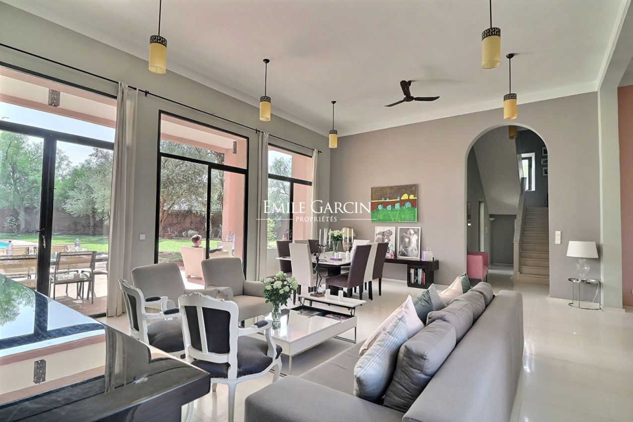 Cette jolie maison contemporaine de 450m2, située à seulement 10 km de Marrakech, route de l'Ourika, est idéale pour un séjour de 6 à 8 personnes.