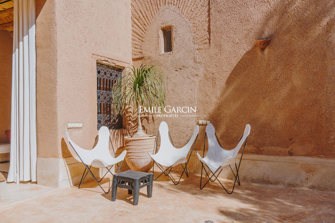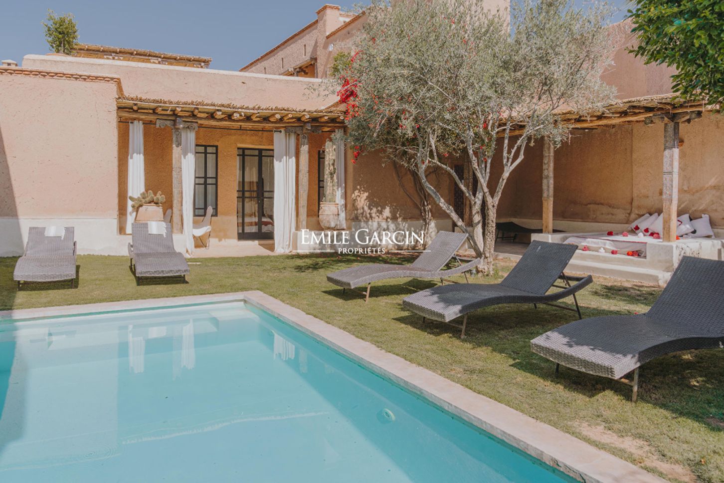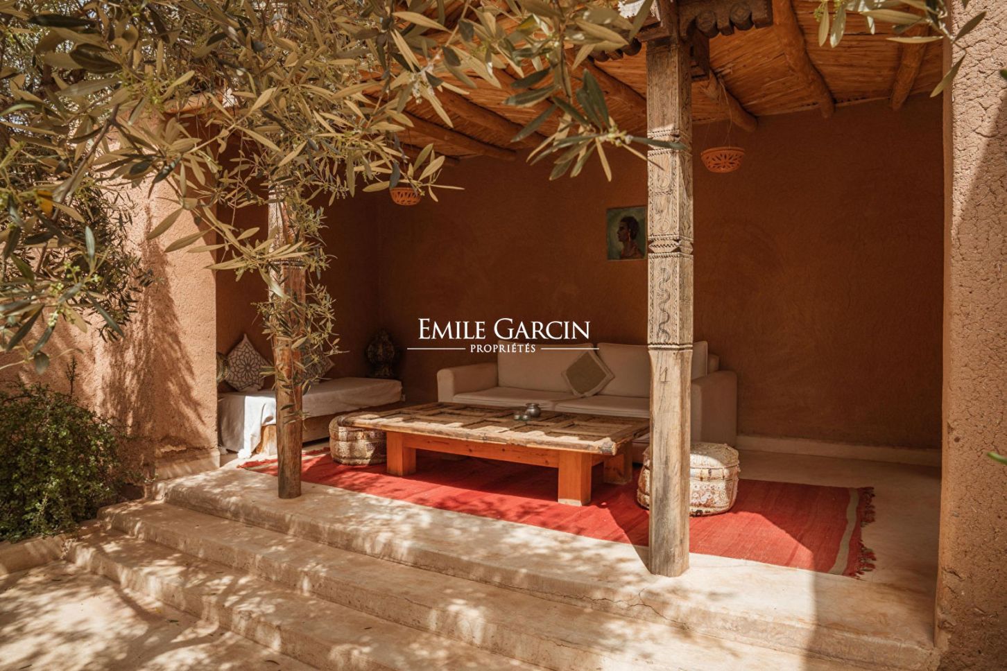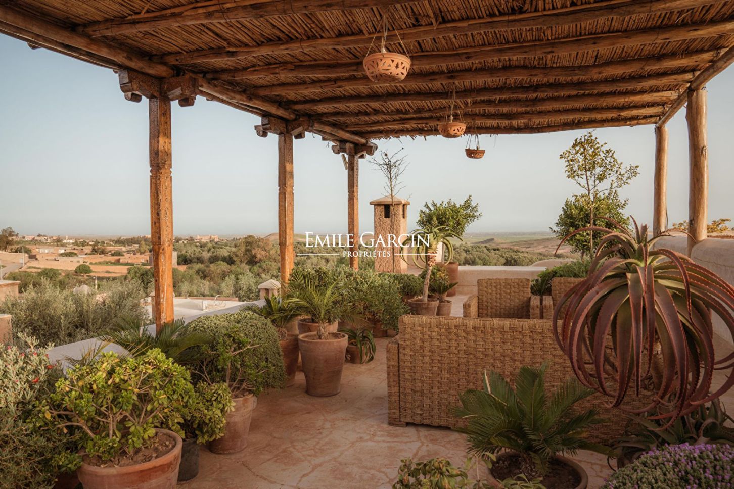 Maison dans un hameau berbère à une vingtaine de km de Marrakech sur la route du barrage. Charmante maison en terre ethno-chic et traditionnelle surplombant les paysages lunaires de la plaine du Haouz qui ondulent en direction du Haut Atlas. Elle se fond merveilleusement à son environnement pittoresque tout en offrant le confort de la vie moderne. La maison comprend 5 chambres , 5 salles de bain, une réception, une salle à manger, vastes séjours intérieur et extérieur, 3 patios, terrasses, 3 jardins, une piscine. Wifi dans toute la maison - Calme et authenticité, idéal pour les familles. DVD, jeux de société. Capacité max de 13 personnes Possibilité de dîner sur place (avec supplément) Chauffage central et climatisation.