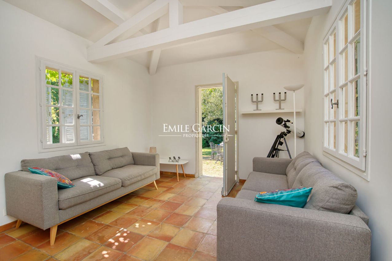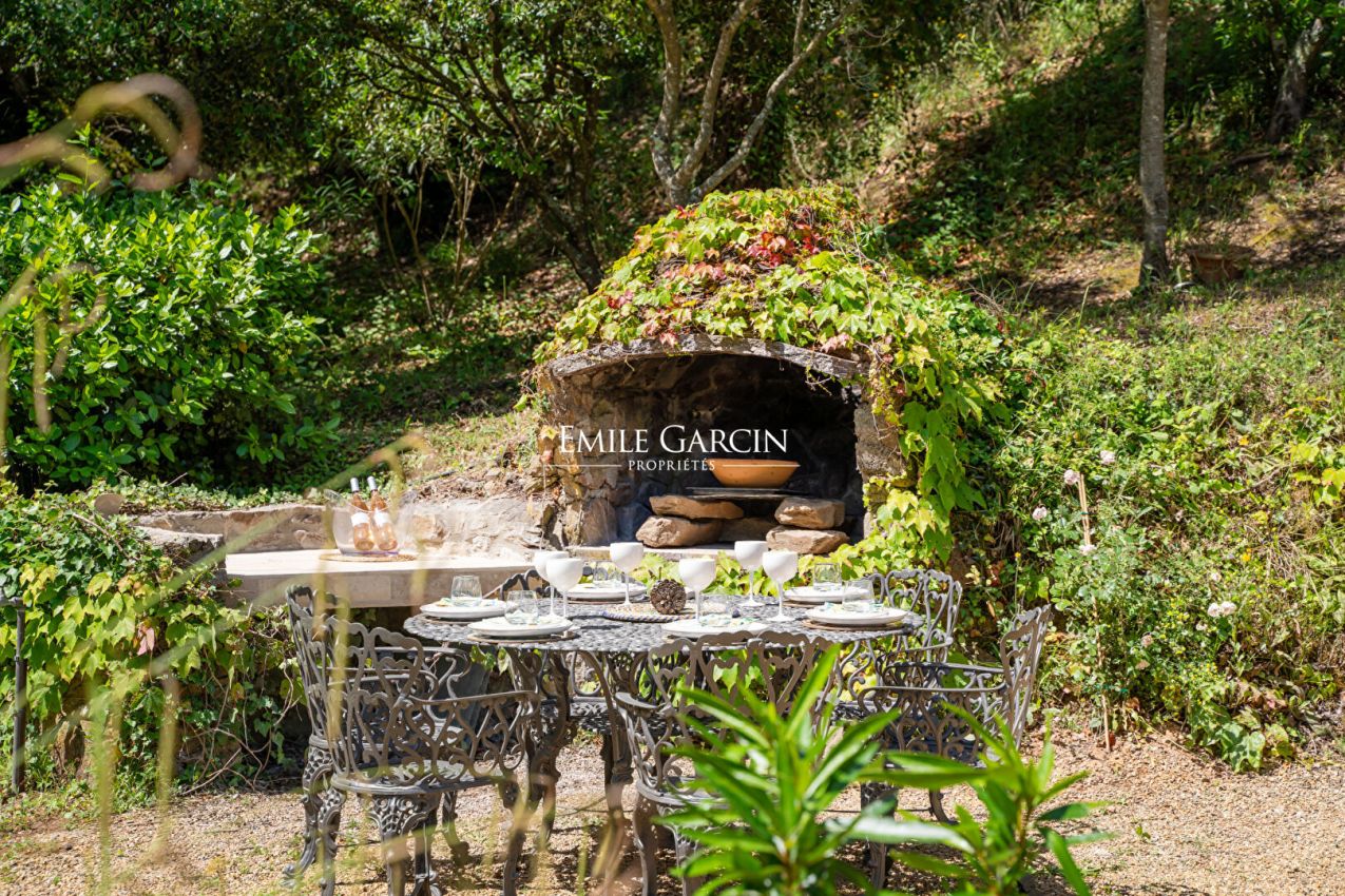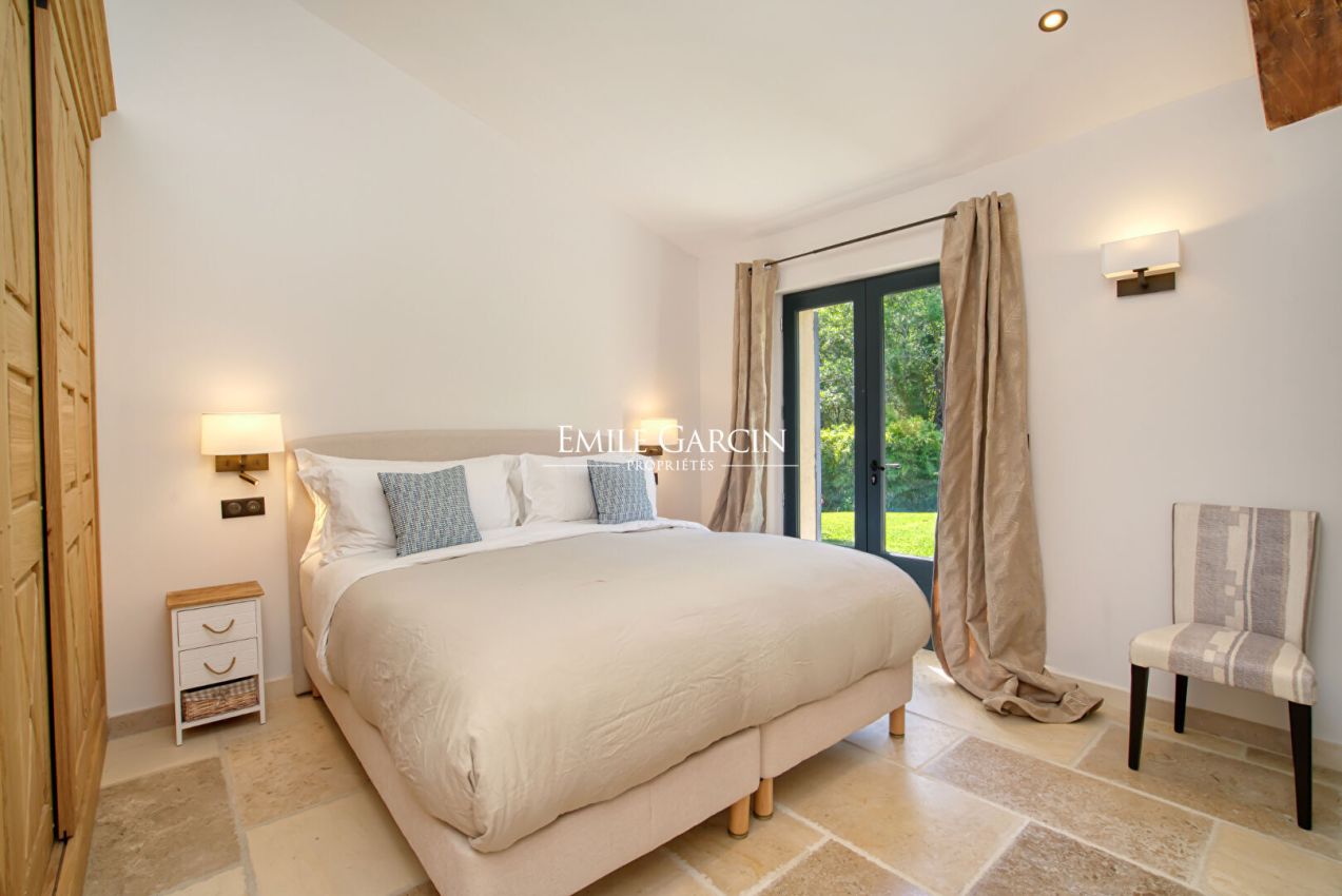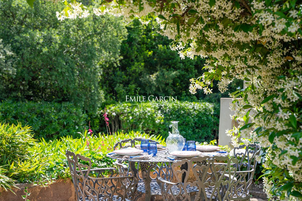 Nichée dans un écrin de verdure, à proximité de Ramatuelle et Saint-Tropez, cette élégante maison de 260 m² offre un cadre paisible et convivial. Elle se compose de 3 chambres dans la maison principale, d'un dortoir ainsi que d'une maison d'amis indépendante avec 1 chambre. Le jardin paysager accueille un parcours pour enfants et une piscine chauffée et sécurisée (10x6 m).