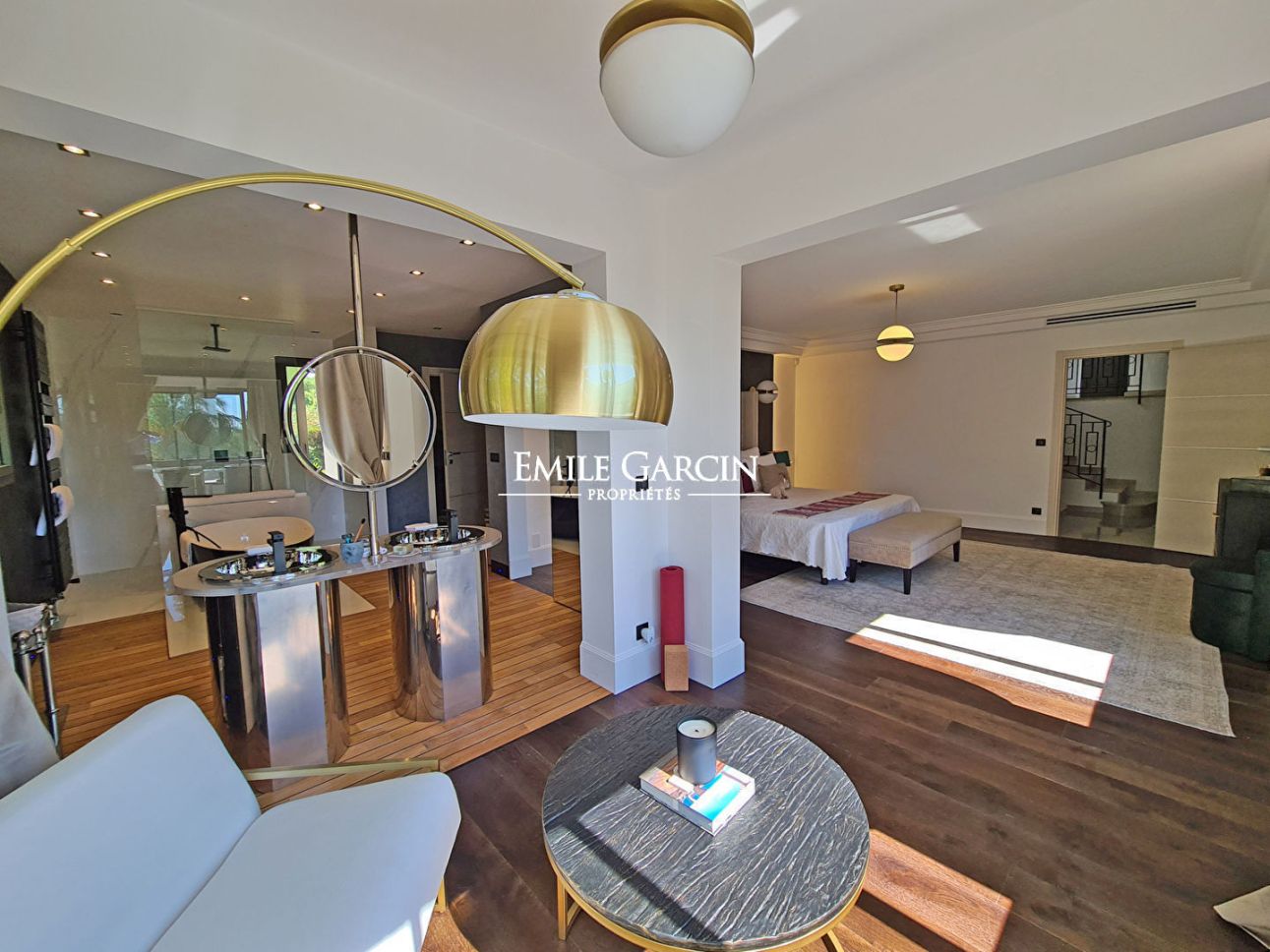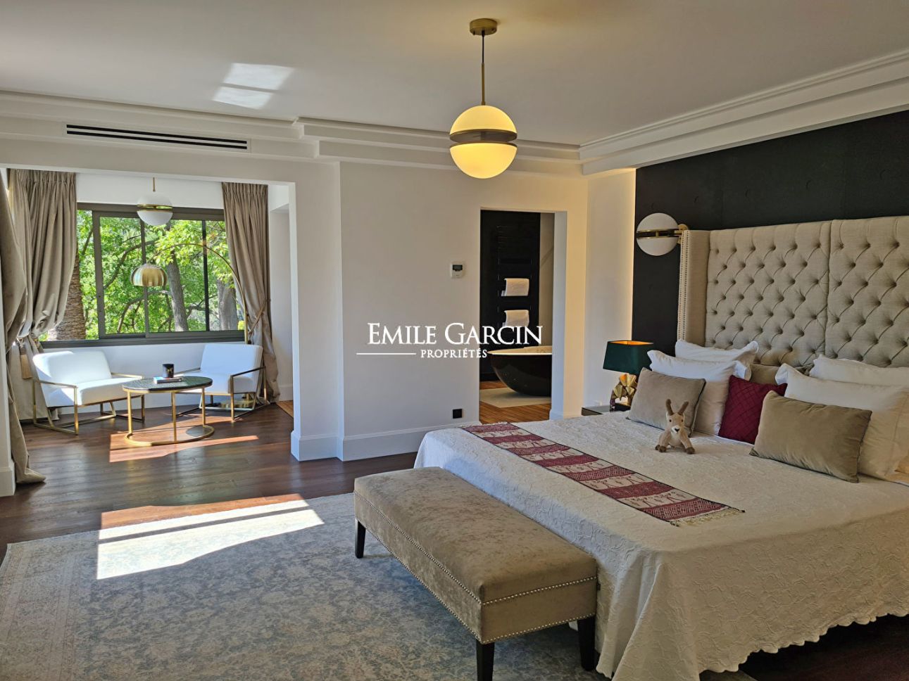 Le jardin et ses essences tropicales vous dépayseront . 6 chambres ensuite, double salon, sauna, salle de yoga, salle de massage, salle de fitness, sauna, hammam avec piscine intérieur et extérieure chauffée. La propriété a été entièrement rénovée avec des finissions haut de gamme telles que des sols en dessin de marbre.