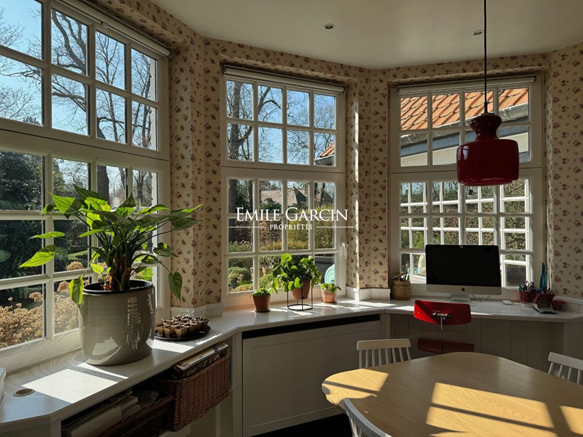 Elle offre une surface habitable d'environ 600 m². Dans un style « so british », de très belles réceptions spacieuses avec double salon et salle-à-manger séparée, une grande cuisine dinatoire, espace salle-de jeux procure à cette propriété une vraie ambiance familiale.