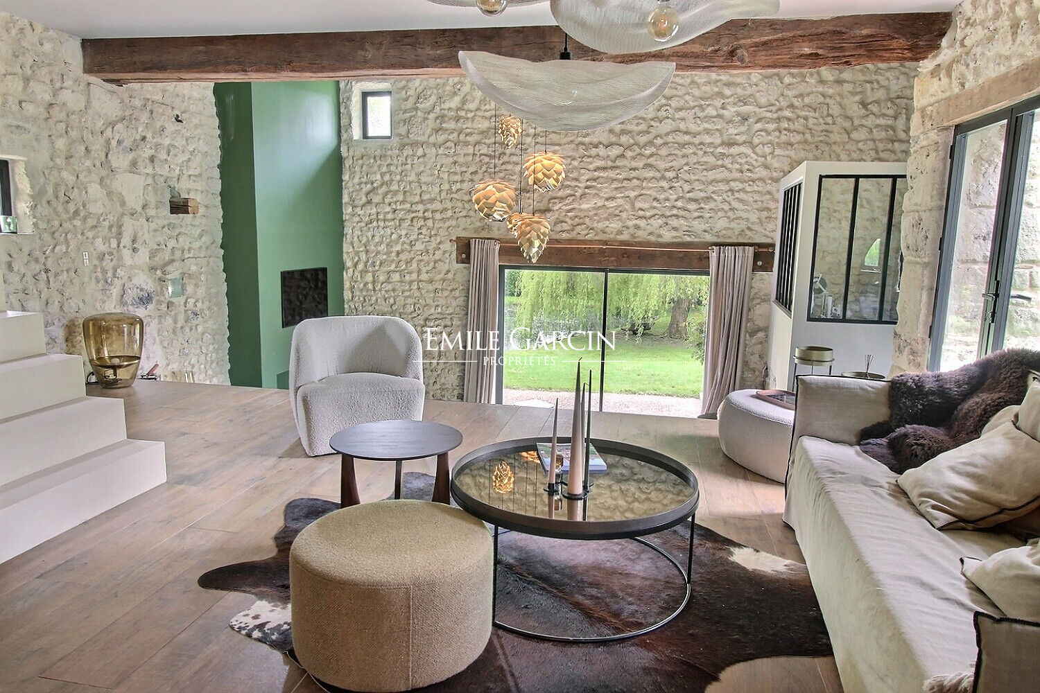 A l'extérieur, le charme opère pleinement : le jardin arboré s'articule autour d'une mare naturelle et d'une superbe piscine avec sa terrasse en bois aménagée. Cette propriété d'exception séduira les amateurs de lieux authentiques, en quête de sérénité et de prestations soignées.