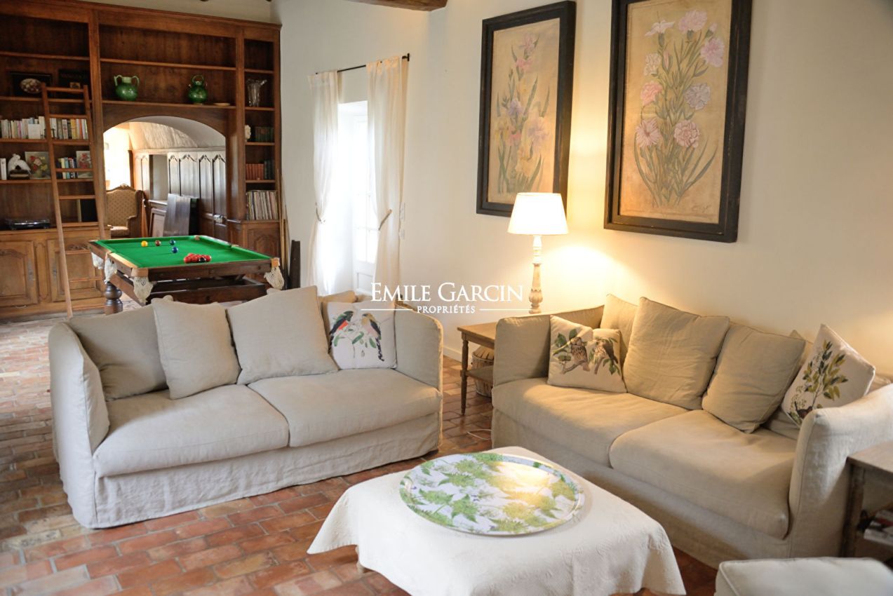 La propriété propose une cuisine équipée ouvrant sur une grand terrasse extérieure ombragée; deux beaux salons à la décoration raffinée, dont un avec billard.
