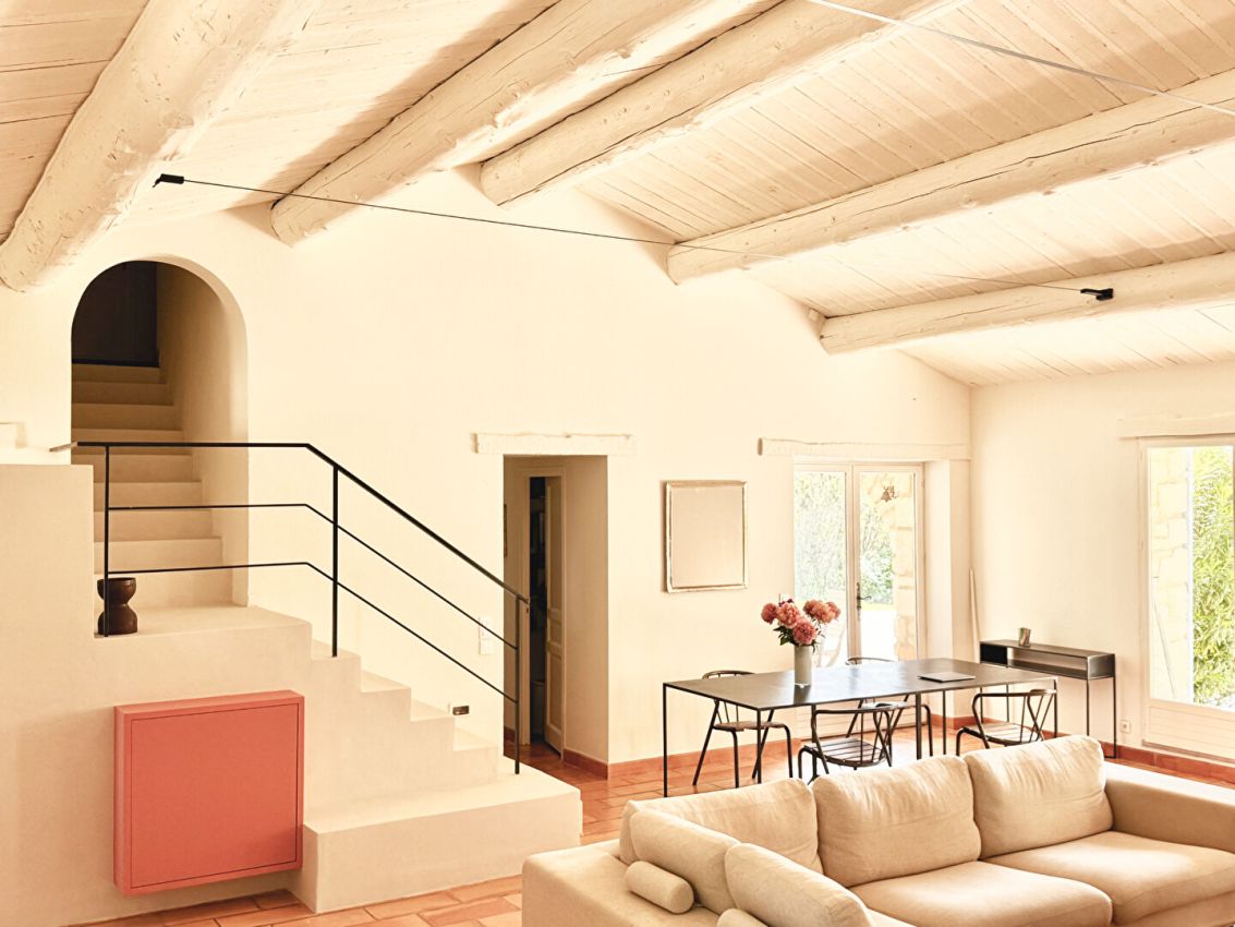 Entre les villages de Goult et de Gordes, au coeur d'une campagne préservée et authentique, ce mas en pierre offre une atmosphère de quiétude et de raffinement. Nichée dans un jardin paysager de plusieurs milliers de mètres carrés, la propriété bénéficie d'une vue dégagée sur les vignes et le massif du Luberon. L'extérieur se compose de nombreux espaces de détente : terrasses ombragées, coin repas à l'abri des regards, vaste espace piscine entouré de verdure et d'un terrain de pétanque. Le mas dispose de quatre chambres confortables, chacune dotée de sa salle de bain privative, ainsi que de belles pièces à vivre lumineuses et conviviales : un salon ouvrant sur le jardin et une cuisine parfaitement équipée. Pied-à-terre idéal pour vivre un été provençal, à seulement quelques minutes des villages emblématiques du Luberon. Nous contacter pour les tarifs et la disponibilité.