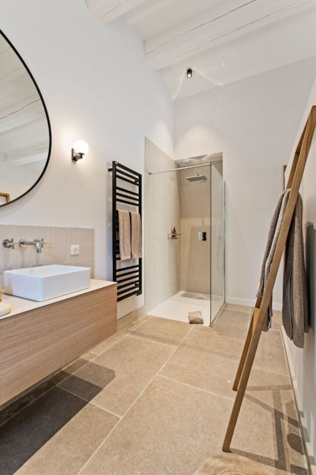 - 5 suites indépendantes avec chacune sa terrasse privée : 1 suite avec salle de bain ouverte sur la chambre, 3 suites avec salle d'eau (dont une ouverte sur la chambre) et un lit d'appoint supplémentaire, 1 suite PMR avec salle d'eau.