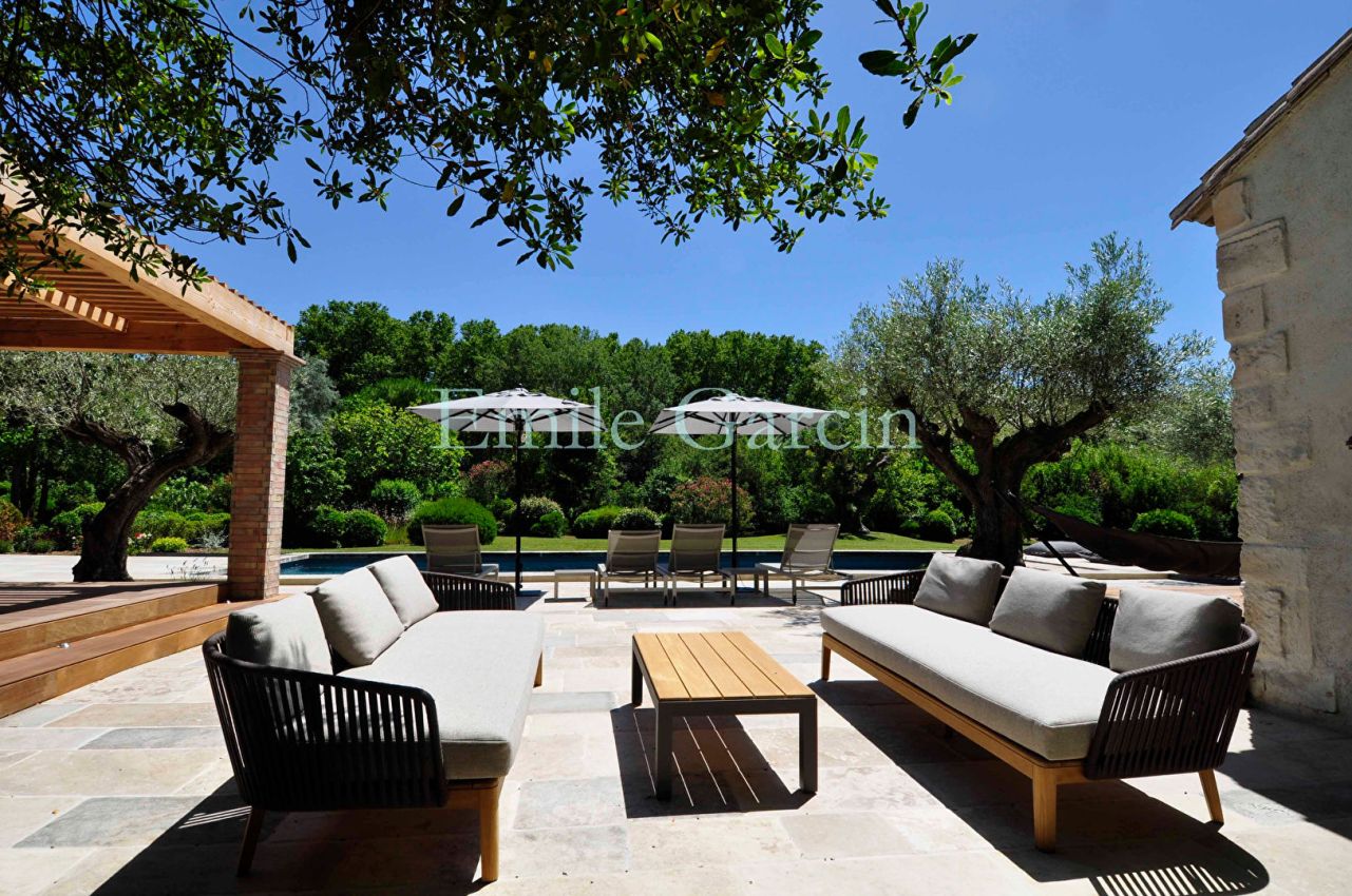 A 5 minutes du centre de Saint-Rémy de Provence, dans un environnement paisible, mas de charme au coeur de son grand jardin planté d'essences méditerranéennes et de fruitiers. La bâtisse, restaurée et décorée avec goût, offre des pièces de réception ouvertes sur la terrasse et le jardin, 5 chambres climatisées (dont une indépendante) et 5 salles de bains. Une piscine chauffée et son pool-house vous inviteront à passer de beaux moments de détente en famille ou entre amis, tennis.
