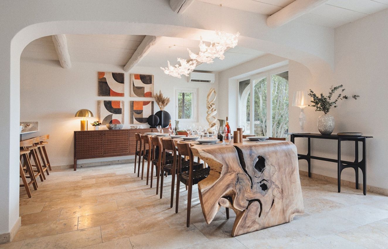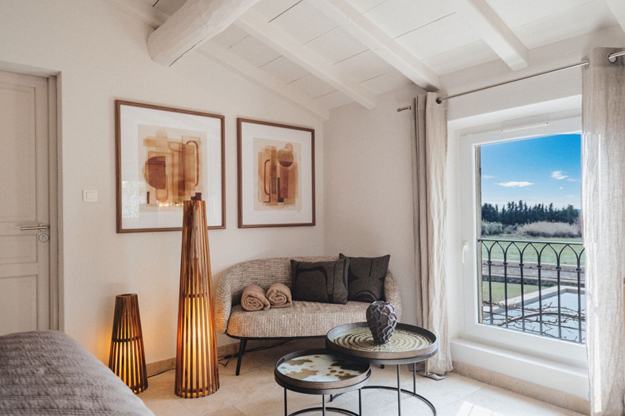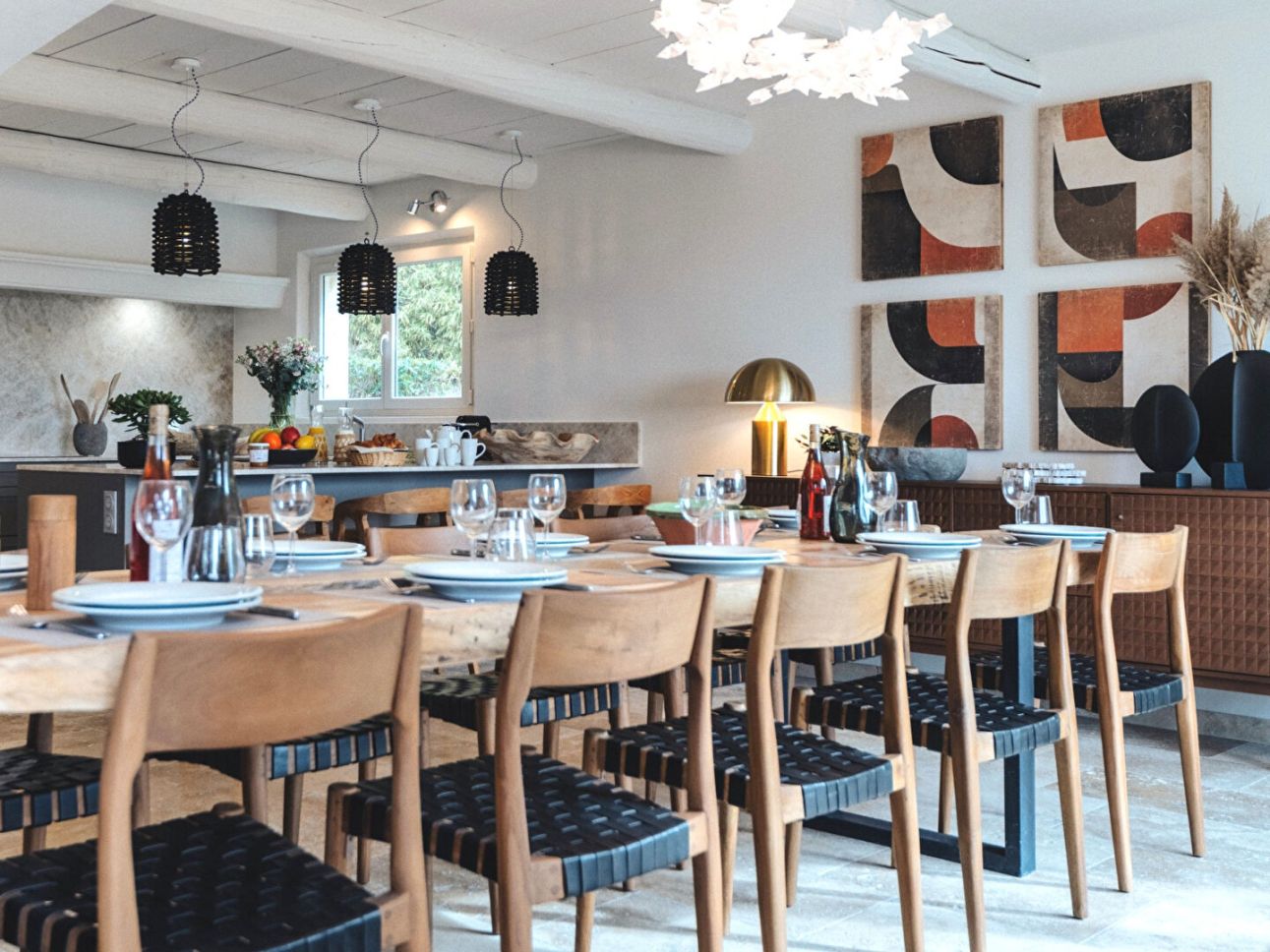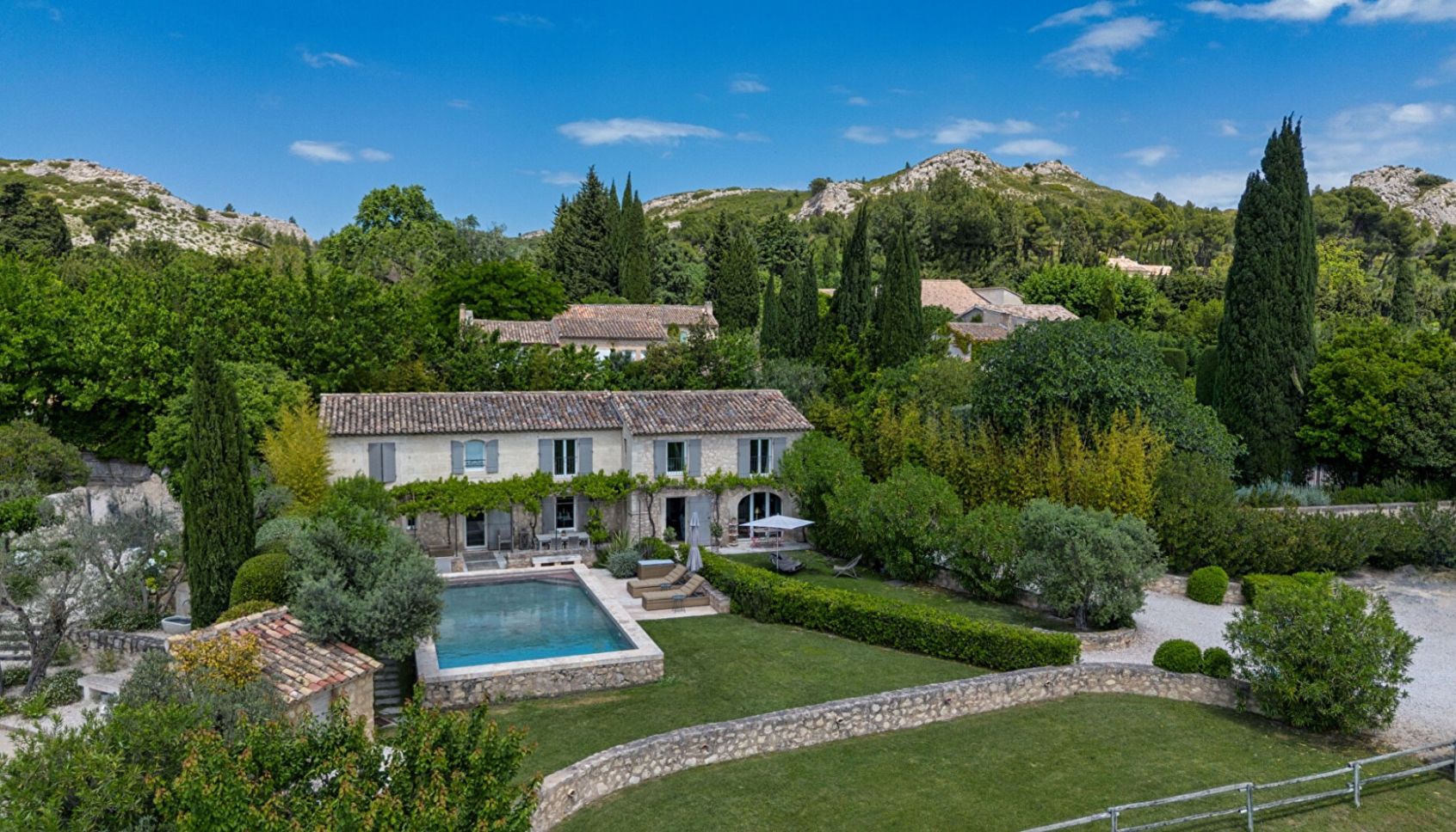 A 2 minutes de Maussane, dans un environnement calme avec vue sur la prairie, très beau mas de 255 m², entièrement climatisée sur un terrain de 2.000 m² . 5 chambres, 5 salles de bains, billard et bar, piscine chauffée 5 x 10m, pétanque.