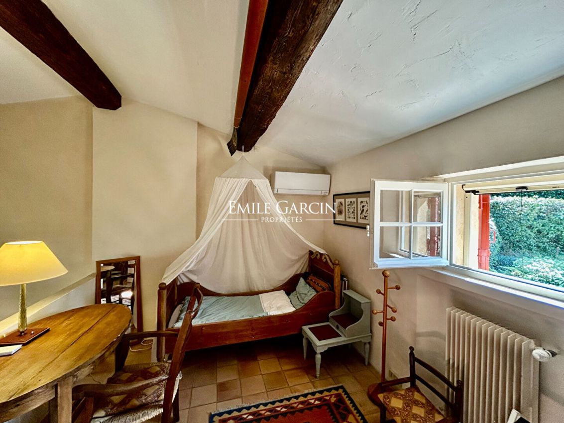 A seulement quelques minutes à pied du coeur de Ménerbes, cette charmante maison provençale bénéficie d'un environnement calme et privilégié, au coeur d'un jardin soigneusement aménagé aux essences méditerranéennes, et offre de très belles vues sur la vallée du Luberon. La propriété accueille confortablement jusqu'à 6 personnes et se compose de trois chambres climatisées, chacune disposant de sa salle de bains, offrant ainsi intimité et confort à tous les occupants. L'agencement, principalement de plain-pied avec une chambre à l'étage, est à la fois fluide et fonctionnel. Les espaces de vie offrent une atmosphère chaleureuse et élégante, avec un salon ouvert sur un magnifique panorama et organisé autour d'une cheminée, une salle à manger ouvrant sur un des terrasses extérieures et une cuisine, entièrement équipée. A l'extérieur, plusieurs terrasses et coins détente permettent de profiter de chaque instant de la journée. Le jardin, structuré par des cyprès, des buis et de belles haies, encadre une piscine de 11 x 4 mètres avec plage aménagée, transats et parasols. Un terrain de pétanque et un barbecue au gaz complètent cet ensemble typiquement provençal. Idéalement située, elle permet de rejoindre facilement les plus beaux villages du Luberon.