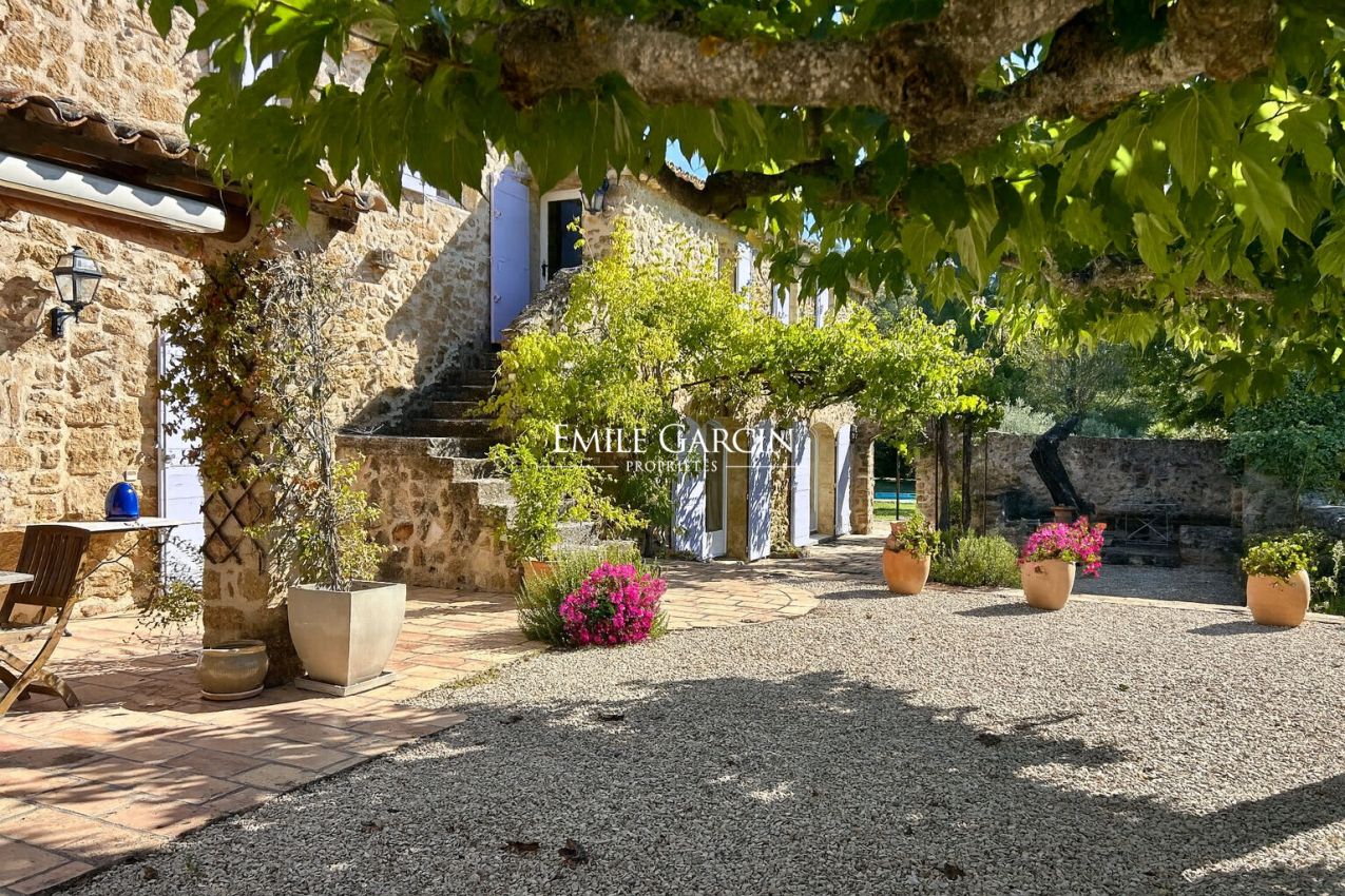 Proche du charmant village de Lauris, à 35 minutes d''Aix-en-Provence et sa gare TGV. Nichée dans un domaine de 9,2 ha avec une oliveraie de 160 arbres, un étang et une piscine, cette propriété authentique offre un cadre naturel d'exception. Le mas en pierre d'environ 340 m² habitables comprend un vaste salon voûté avec cheminée, salle à manger, cuisine ouverte sur terrasse, bibliothèque et bureau. A l'étage, 4 chambres avec salles de bains privatives et dressing. Dépendances : hangar en pierre, garage, abris pour 4 voitures, pool house avec chambre, cuisine et salle de bains. Un lieu rare alliant charme, espace et sérénité, idéal pour les amoureux de la Provence.